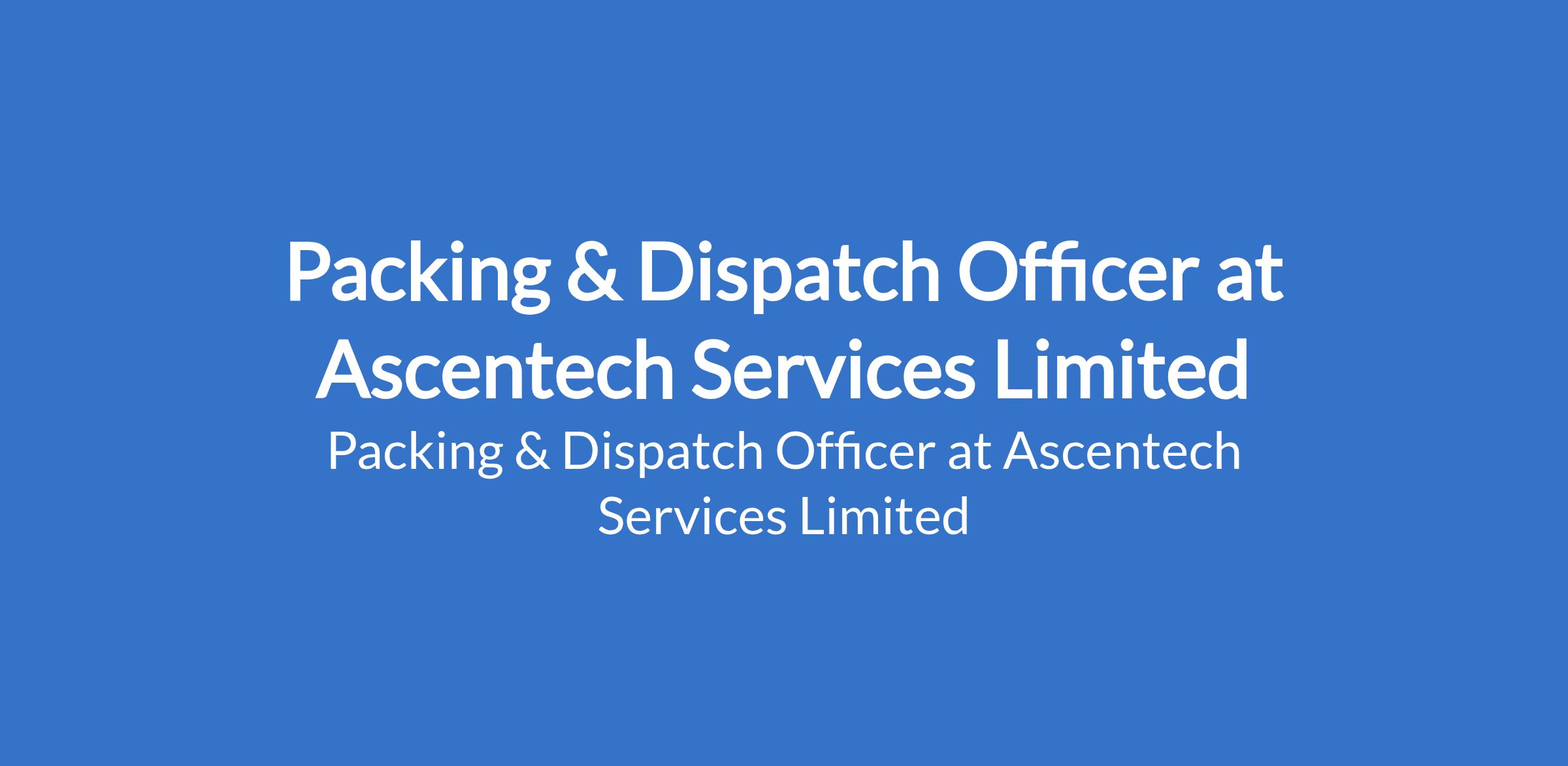 Ascentech Services Limited is recruiting to fill the position of: Packing & Dispatch Officer. The position is located in Shagamu, Ogun State. Salary: N180,000 - N210,000 / month. Interested candidates should possess a Bachelors Degree (Graduate) with 35 years of experience in the FMCG or Manufacturing Industry.