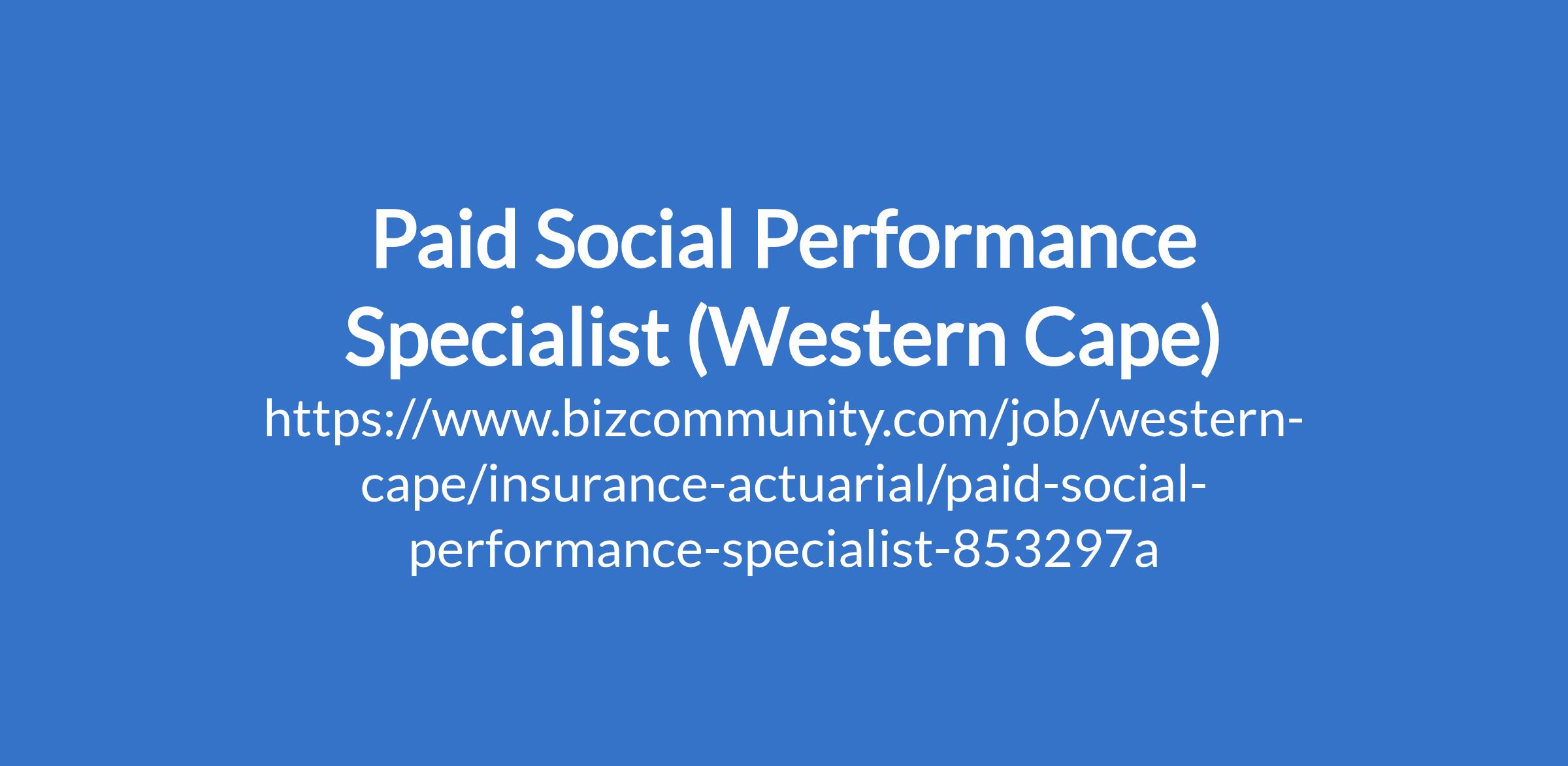 Paid Social Performance Specialist (Western Cape)