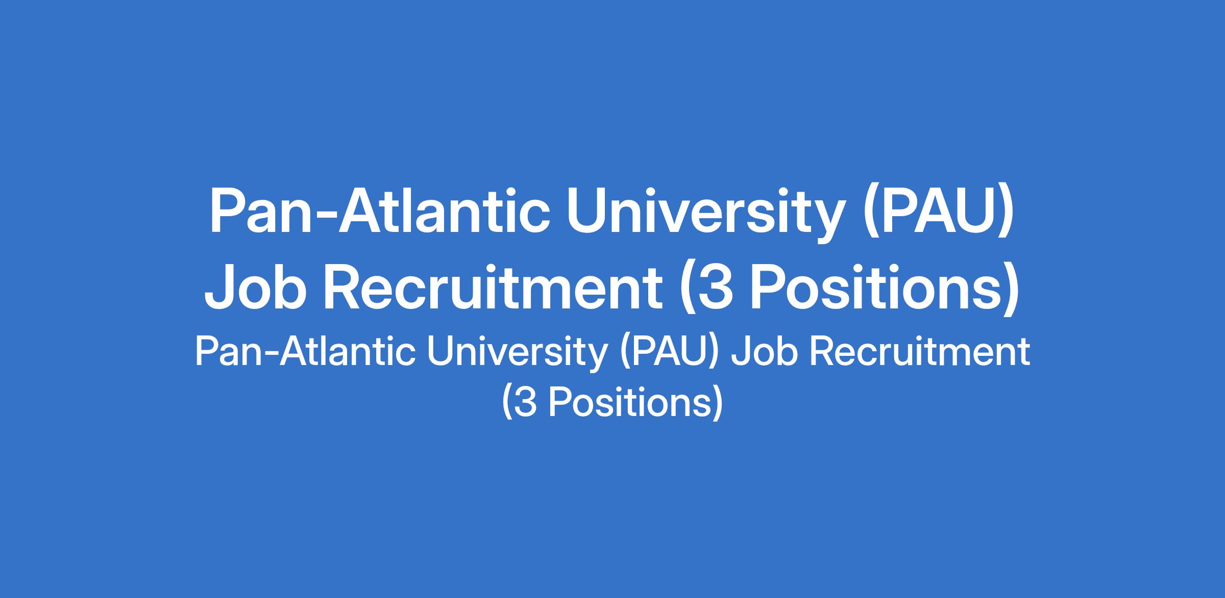 Pan-Atlantic University (PAU) is recruiting suitable candidates to fill the following positions in Lagos State: Monitoring, Evaluation & Learning (MEL) Associate, Communications and Public Relations Specialist, and Visual Media Specialist (Videography & Photography).