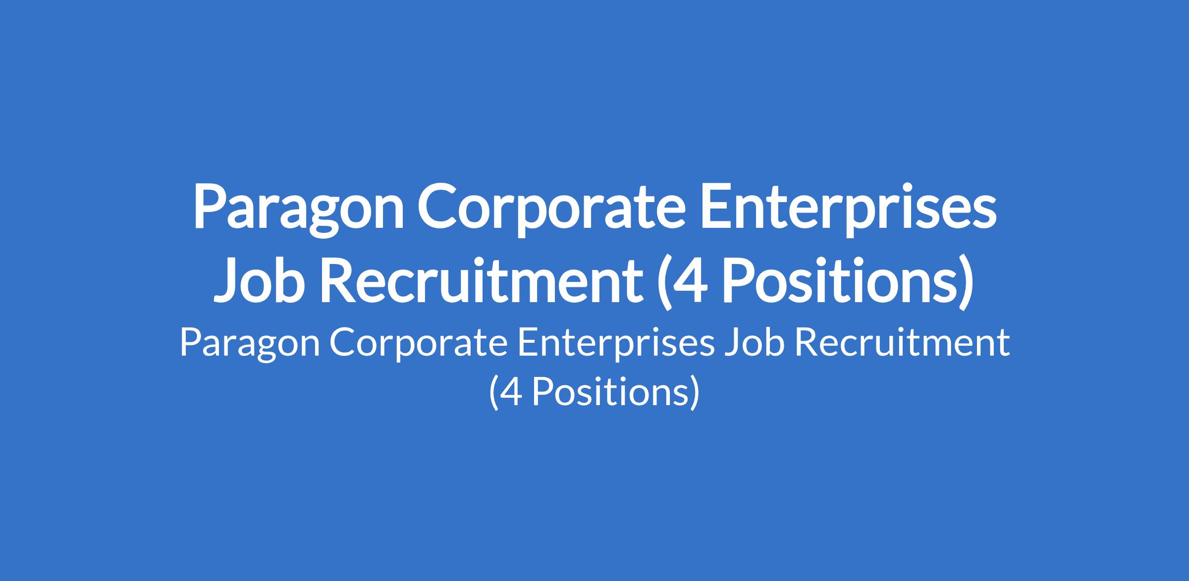Paragon Corporate Enterprises Job Recruitment (4 Positions)