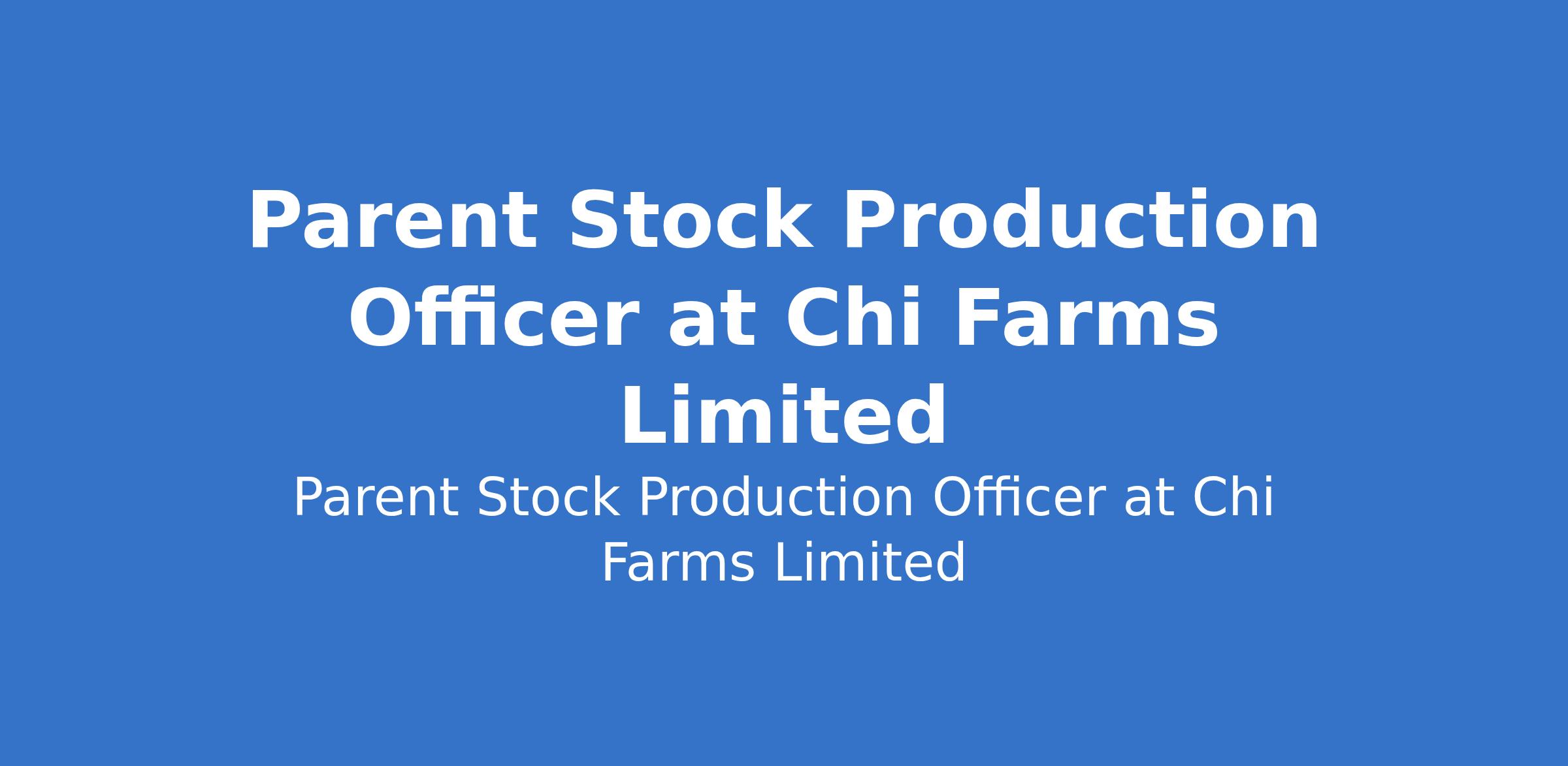 Chi Farms Limited is recruiting to fill the position of: Parent Stock Production Officer. The position is located in Ibadan, Oyo State. Interested candidates should possess an HND or Bachelor's Degree in Agriculture or related field with 3-5 years of proven work experience, preferably in a similar role.