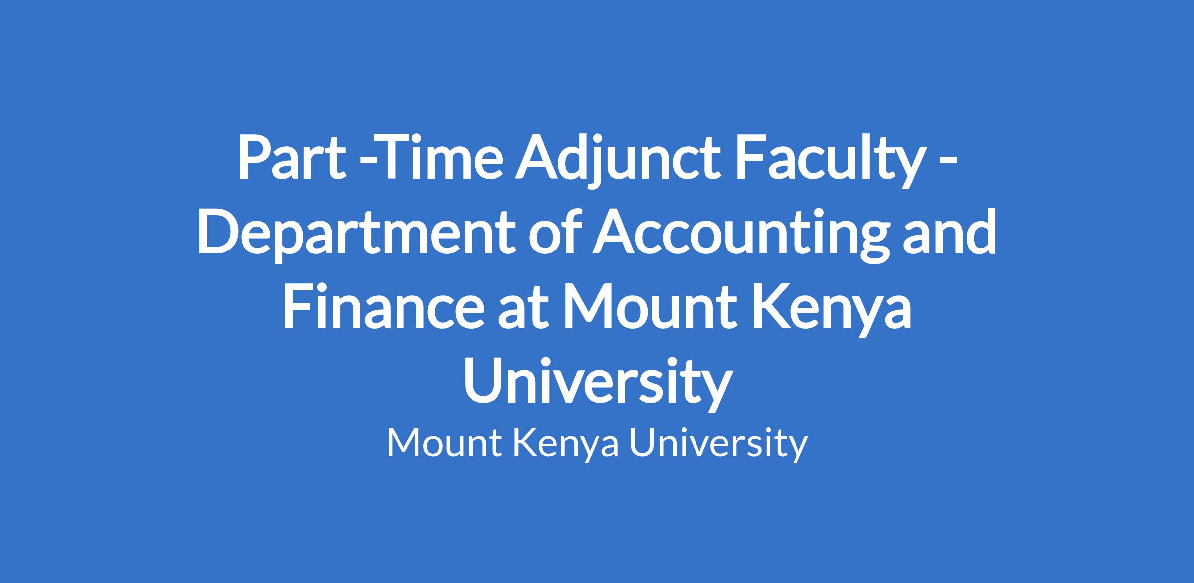 Part -Time Adjunct Faculty - Department of Accounting and Finance at Mount Kenya University