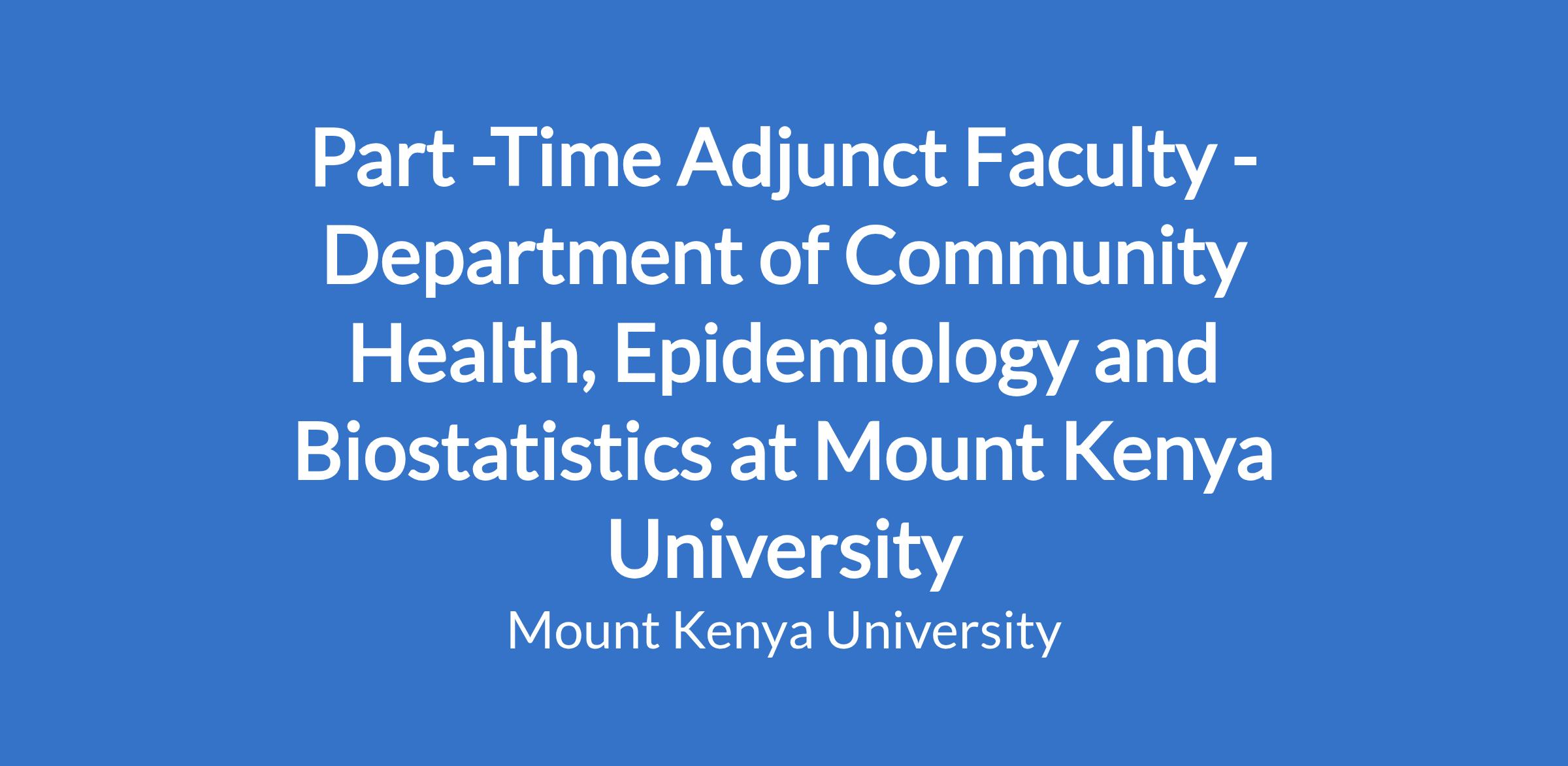Part -Time Adjunct Faculty - Department of Community Health, Epidemiology and Biostatistics at Mount Kenya University
