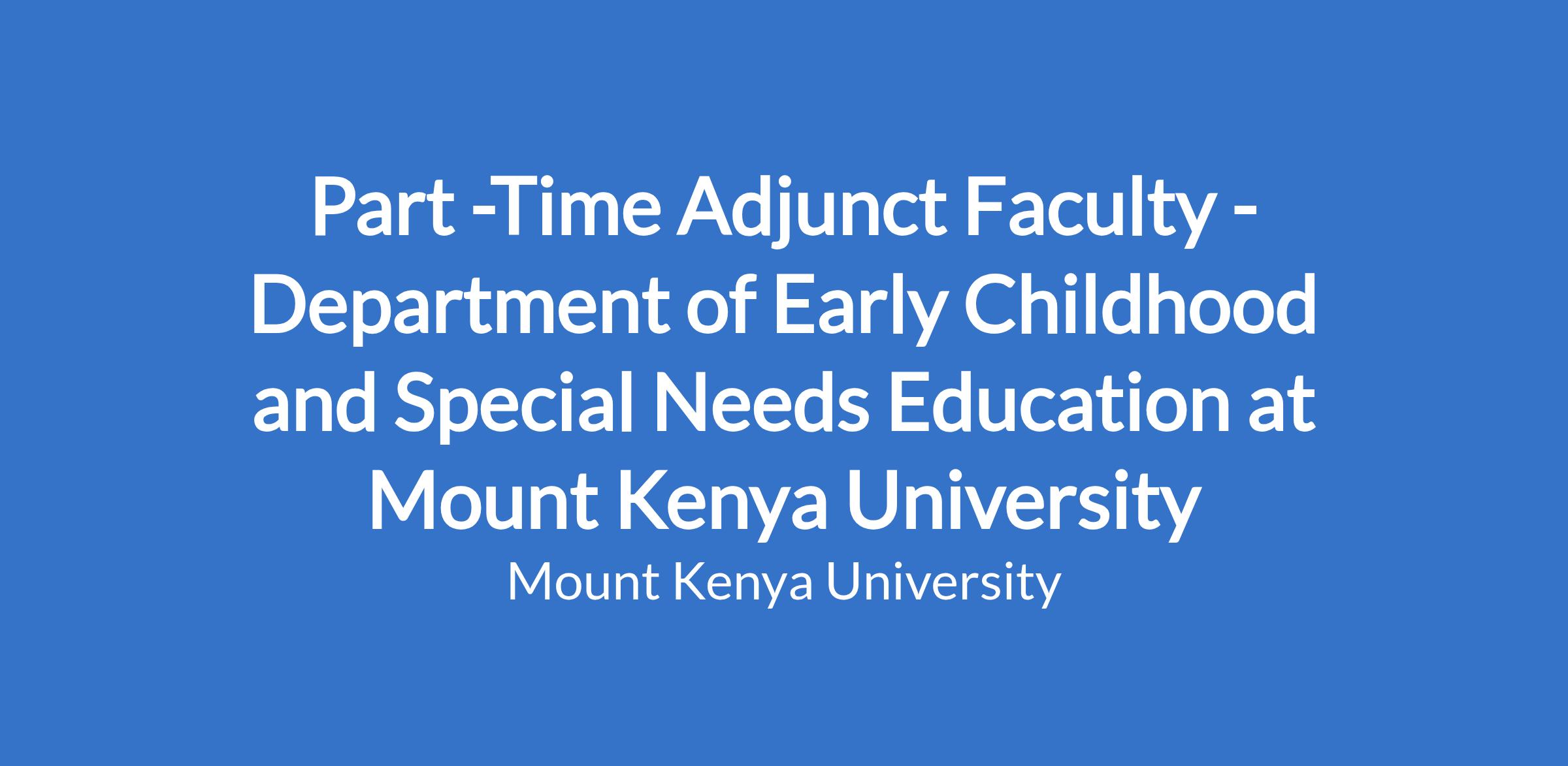 Part -Time Adjunct Faculty - Department of Early Childhood and Special Needs Education at Mount Kenya University