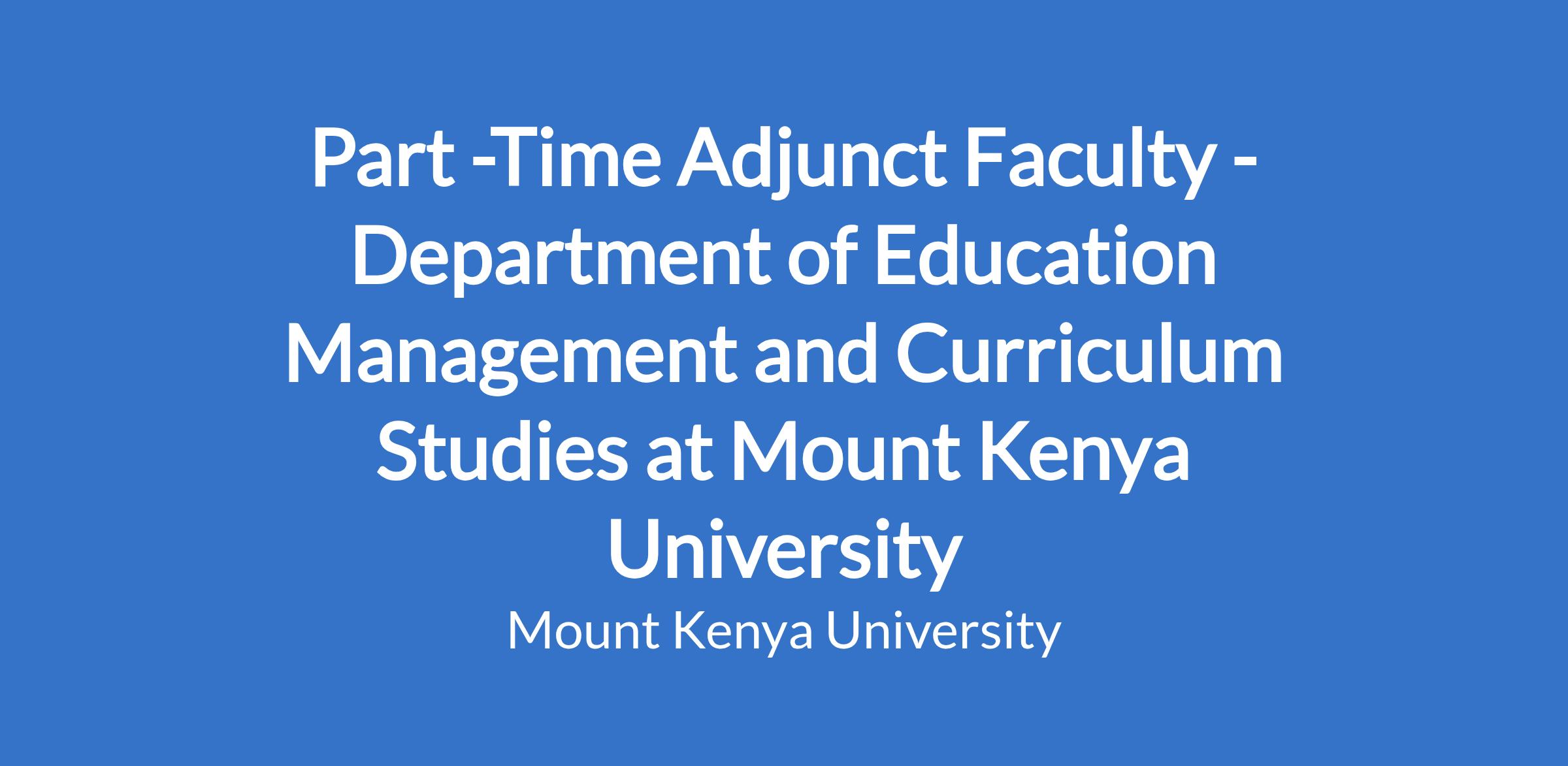 Part -Time Adjunct Faculty - Department of Education Management and Curriculum Studies at Mount Kenya University