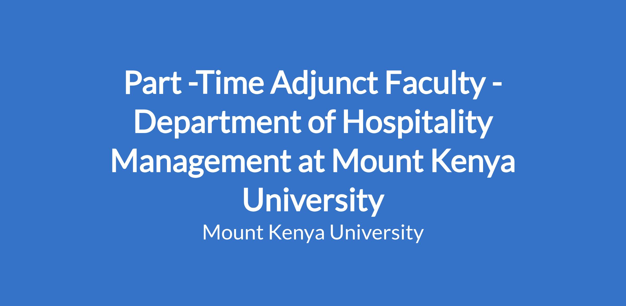Part -Time Adjunct Faculty - Department of Hospitality Management at Mount Kenya University