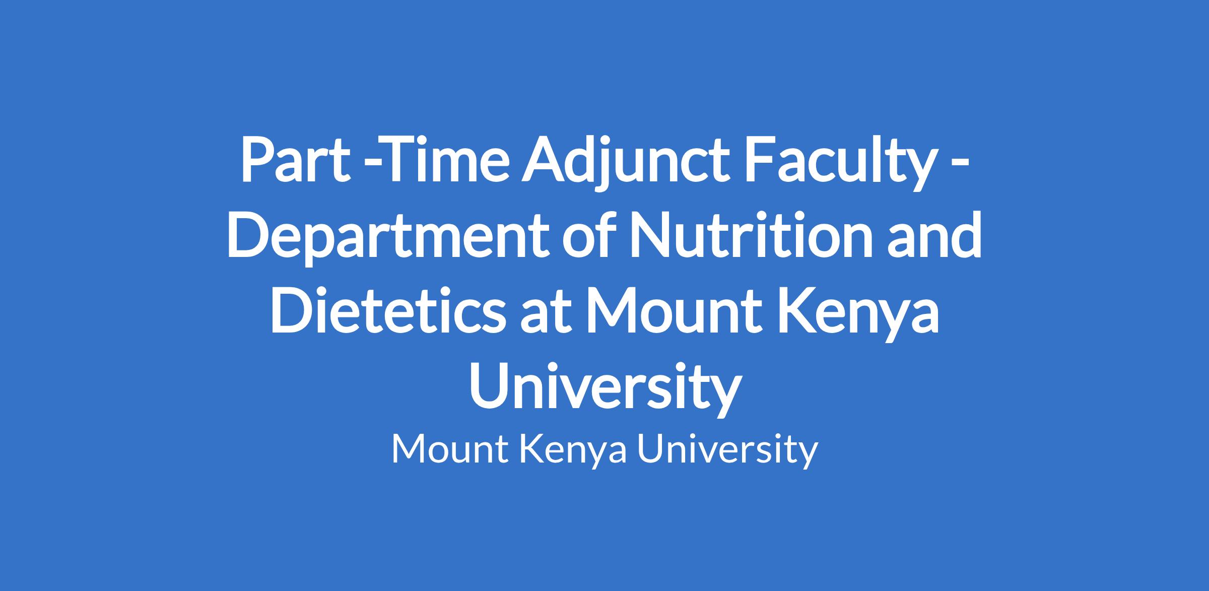 Part -Time Adjunct Faculty - Department of Nutrition and Dietetics at Mount Kenya University