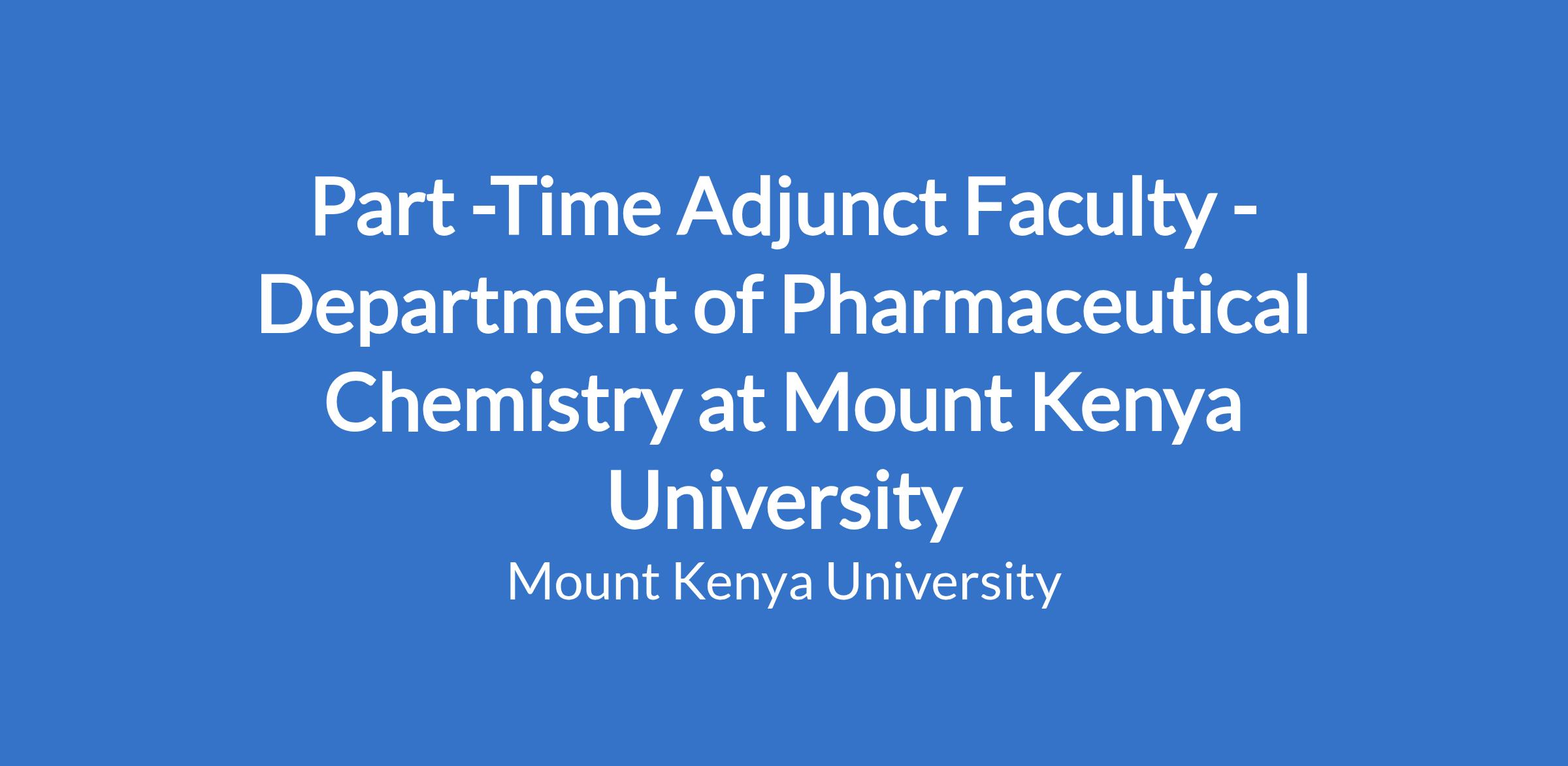 Part -Time Adjunct Faculty - Department of Pharmaceutical Chemistry at Mount Kenya University