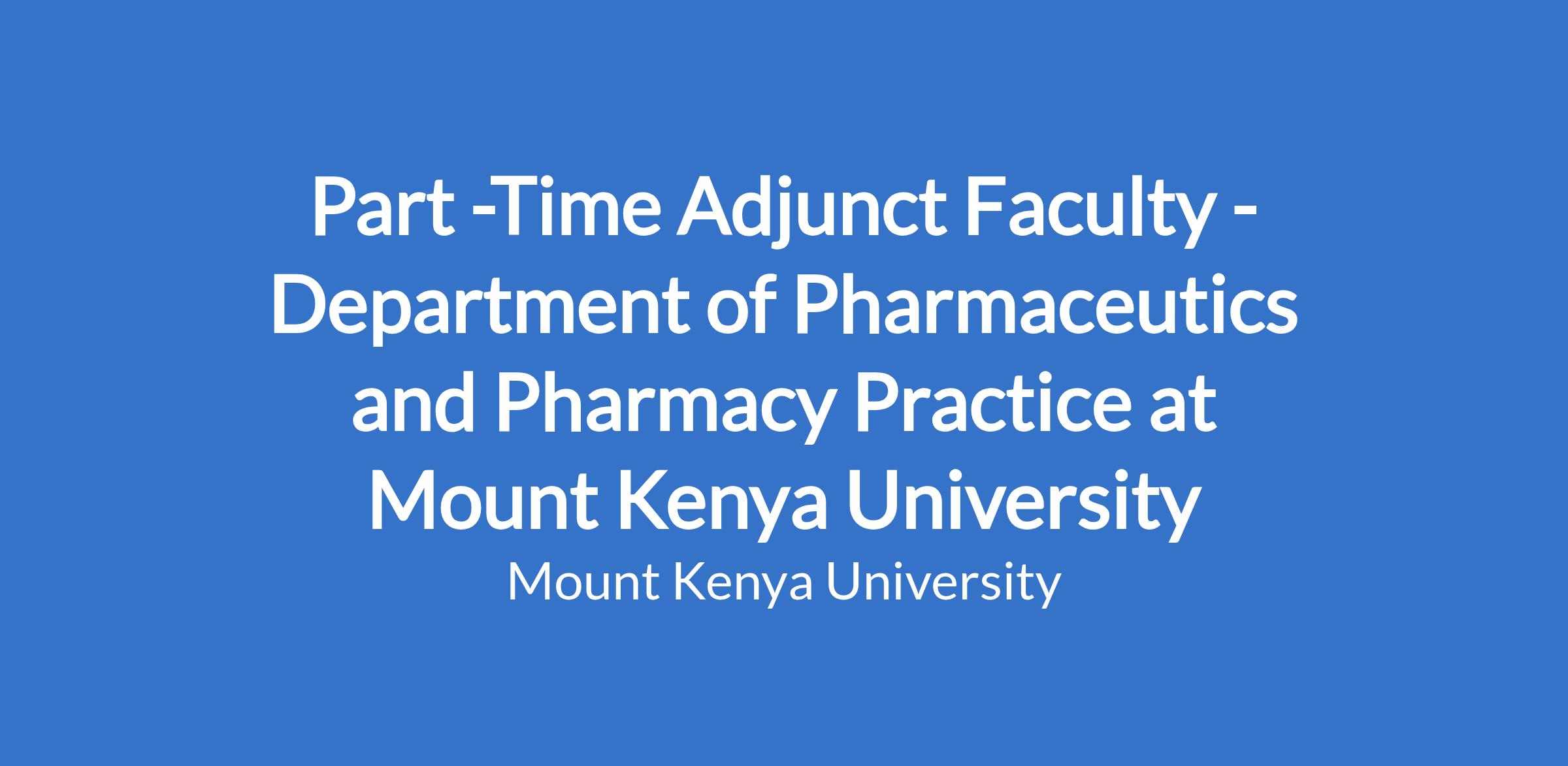 Part -Time Adjunct Faculty - Department of Pharmaceutics and Pharmacy Practice at Mount Kenya University