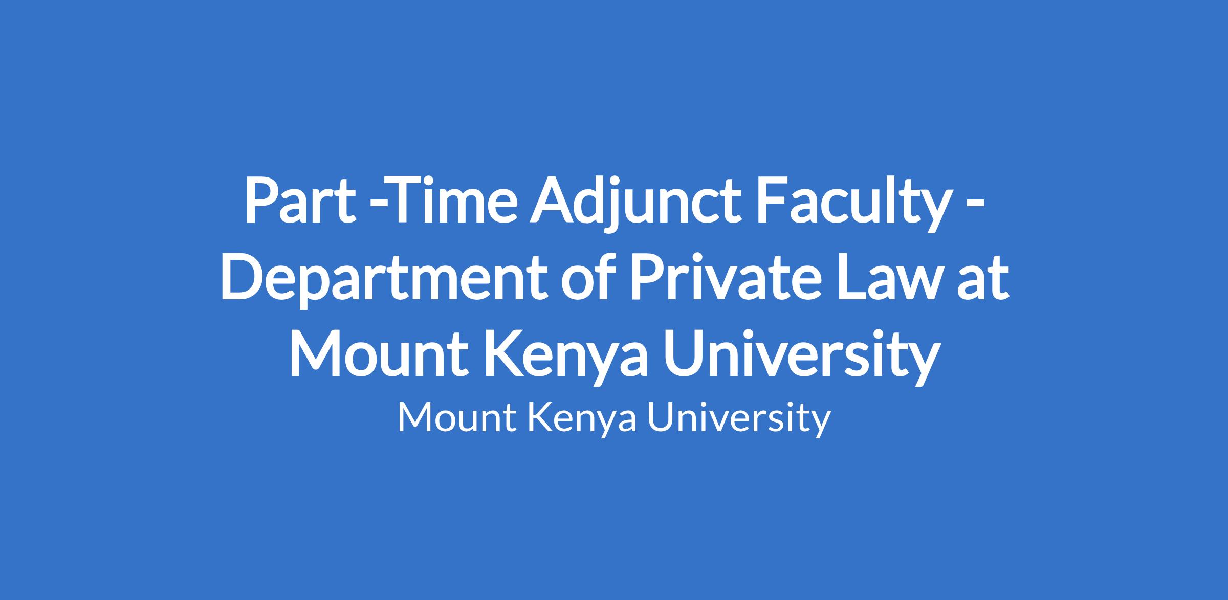 Part -Time Adjunct Faculty - Department of Private Law at Mount Kenya University