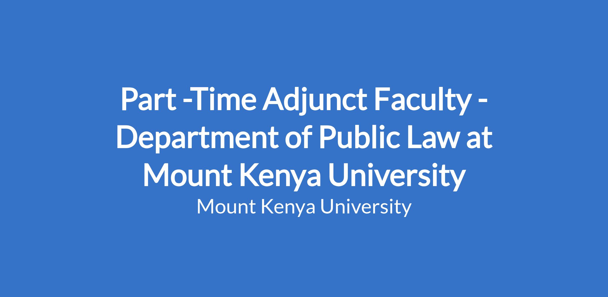 Part -Time Adjunct Faculty - Department of Public Law at Mount Kenya University