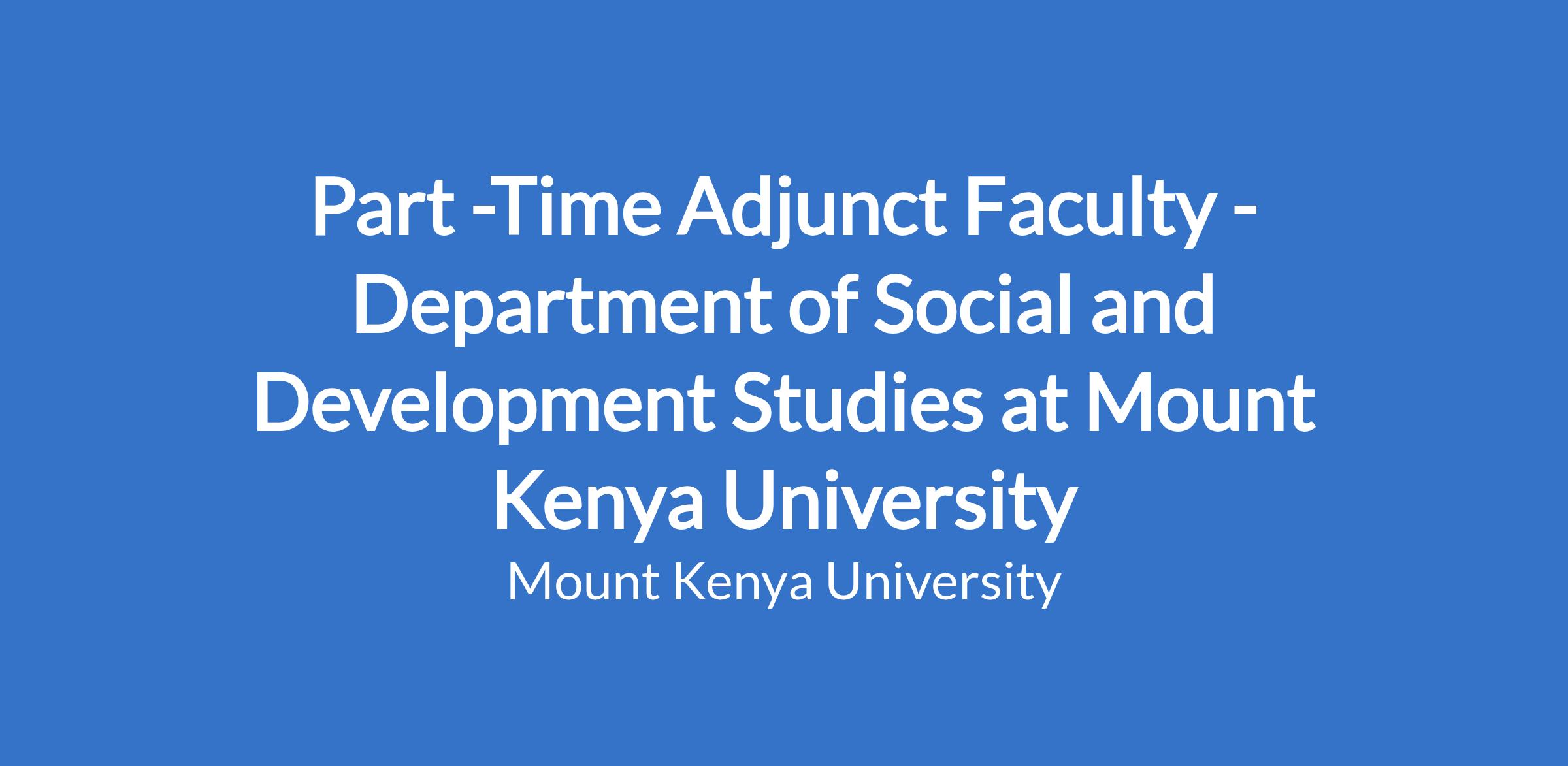 Part -Time Adjunct Faculty - Department of Social and Development Studies at Mount Kenya University