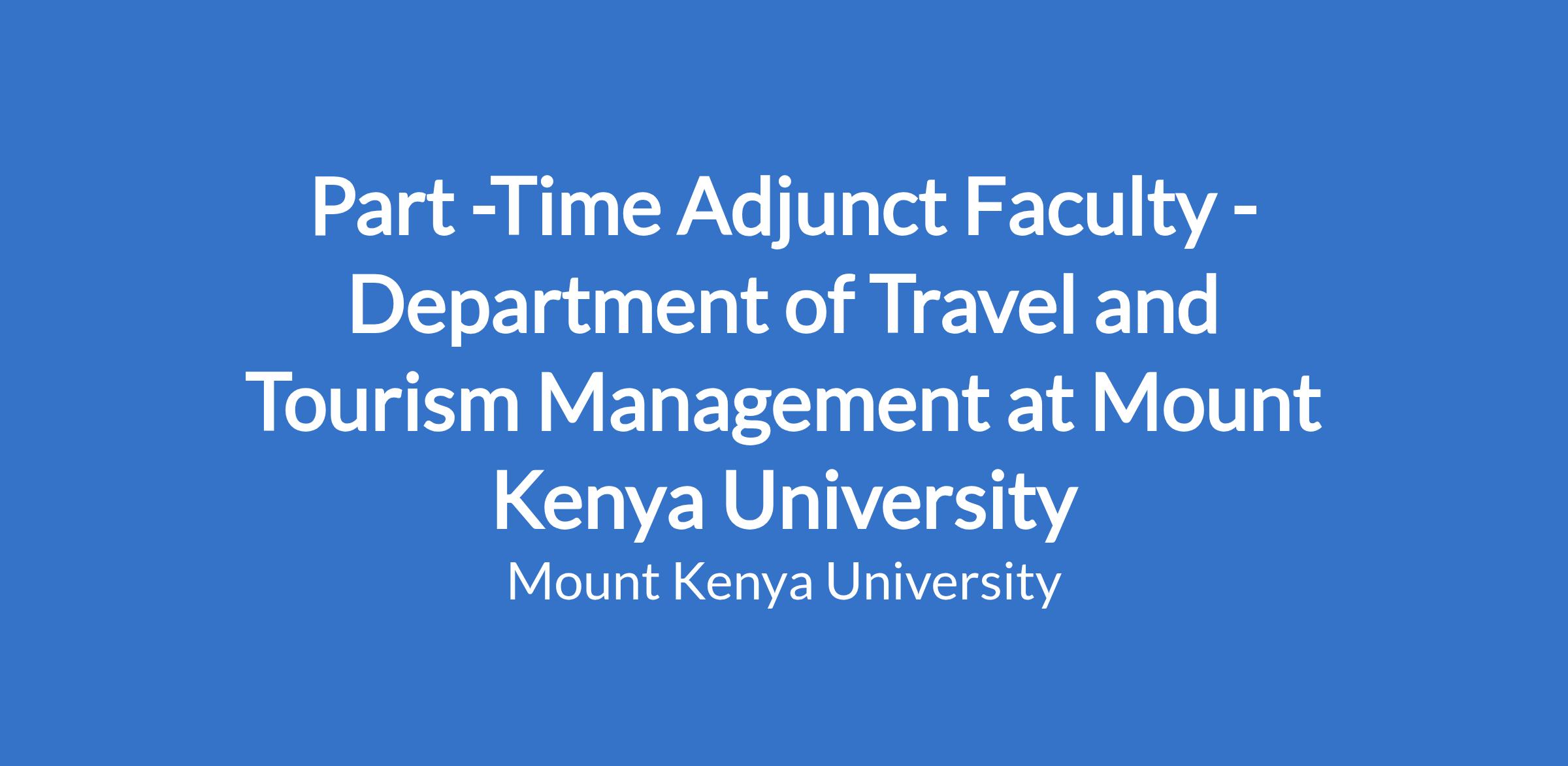 Part -Time Adjunct Faculty - Department of Travel and Tourism Management at Mount Kenya University