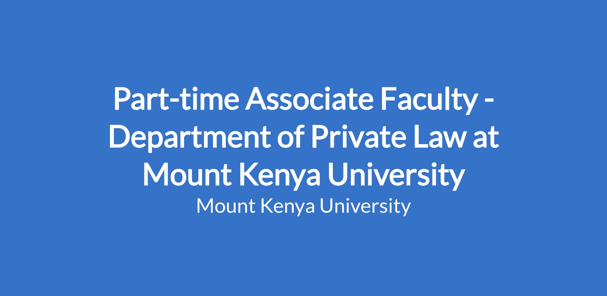 Part-time Associate Faculty - Department of Private Law at Mount Kenya University