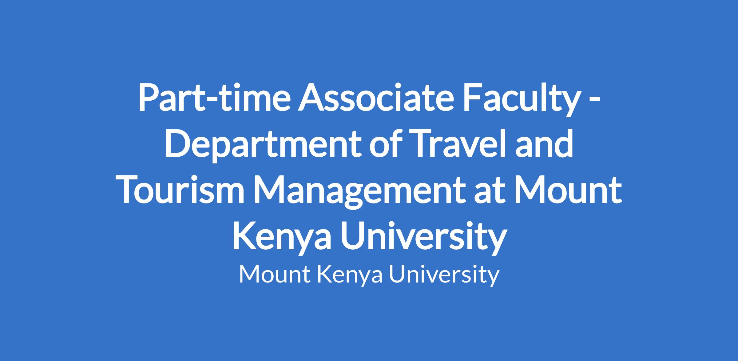 Part-time Associate Faculty - Department of Travel and Tourism Management at Mount Kenya University