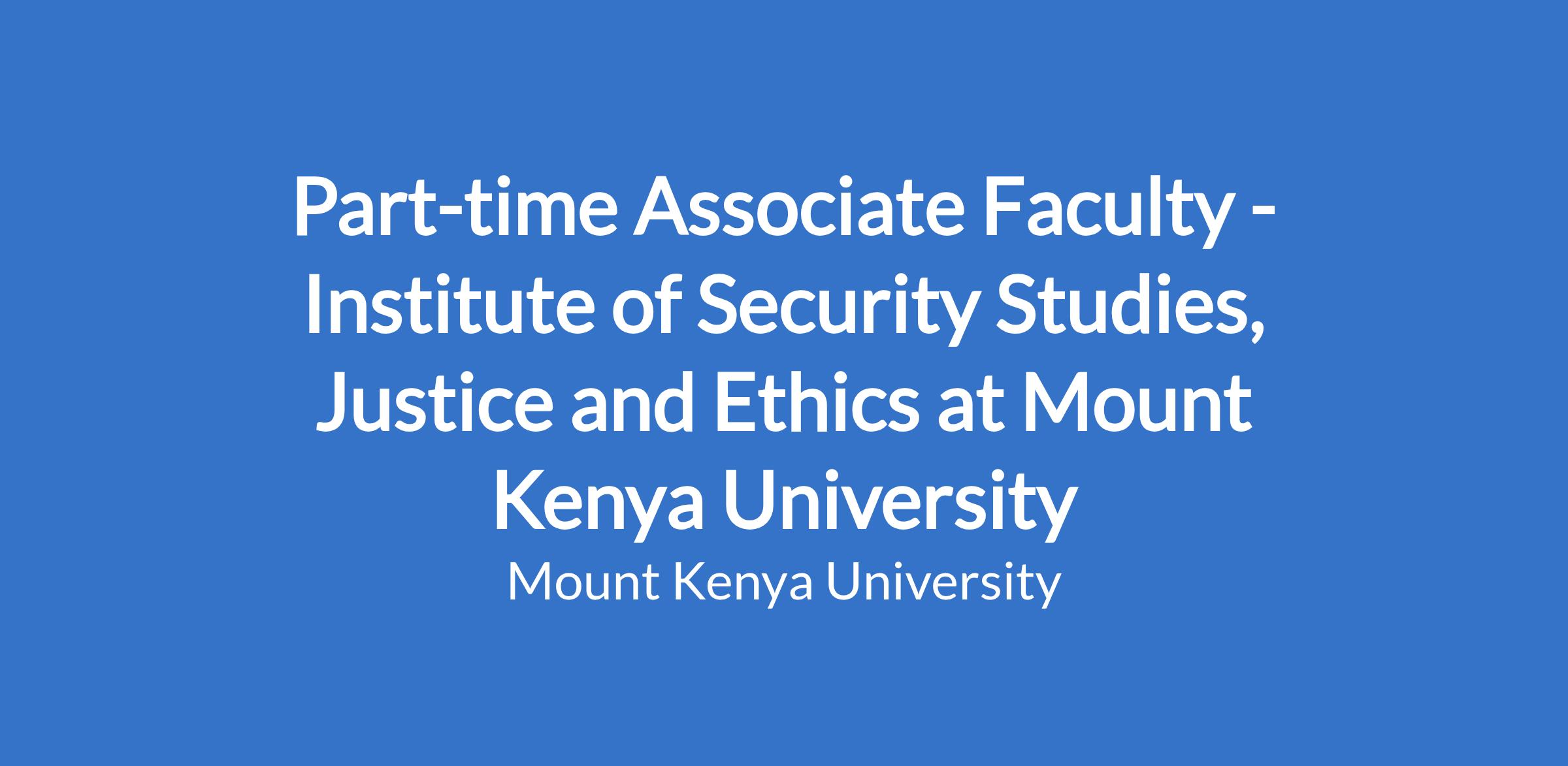 Part-time Associate Faculty - Institute of Security Studies, Justice and Ethics at Mount Kenya University