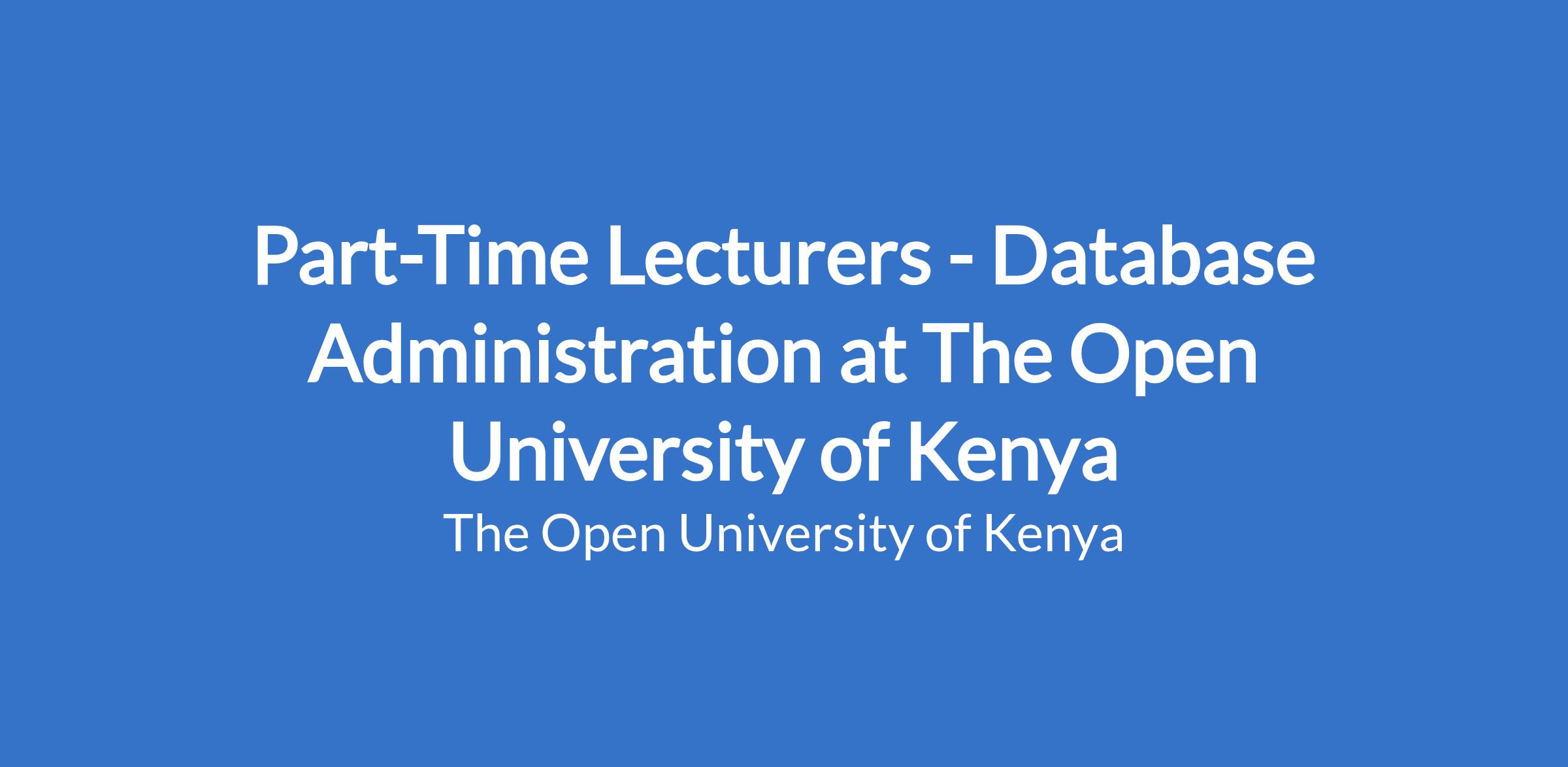 Part-Time Lecturers - Database Administration at The Open University of Kenya