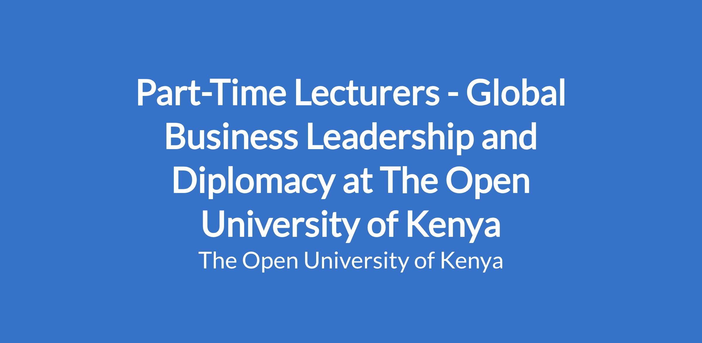 Part-Time Lecturers - Global Business Leadership and Diplomacy at The Open University of Kenya