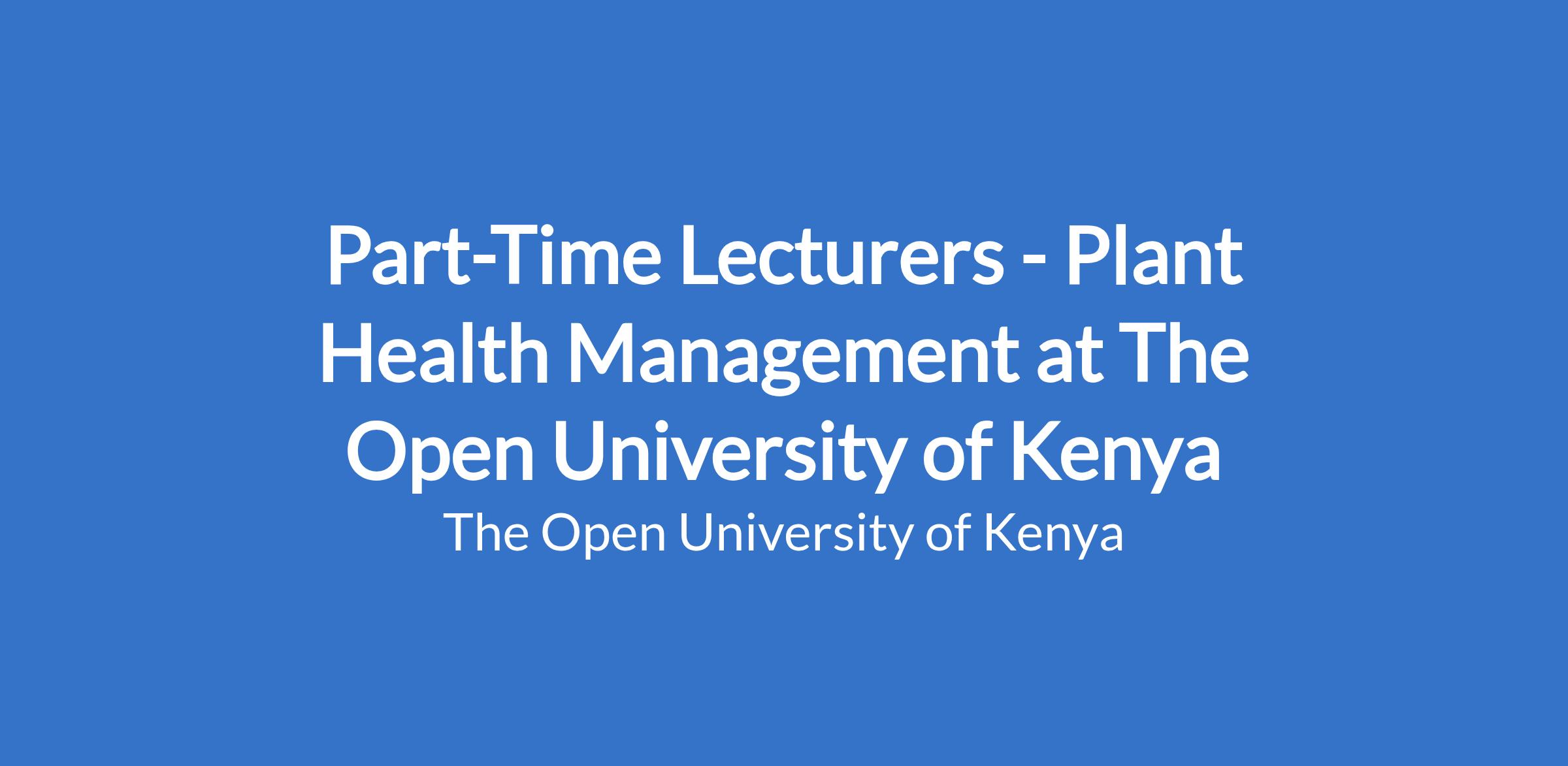 Part-Time Lecturers - Plant Health Management at The Open University of Kenya