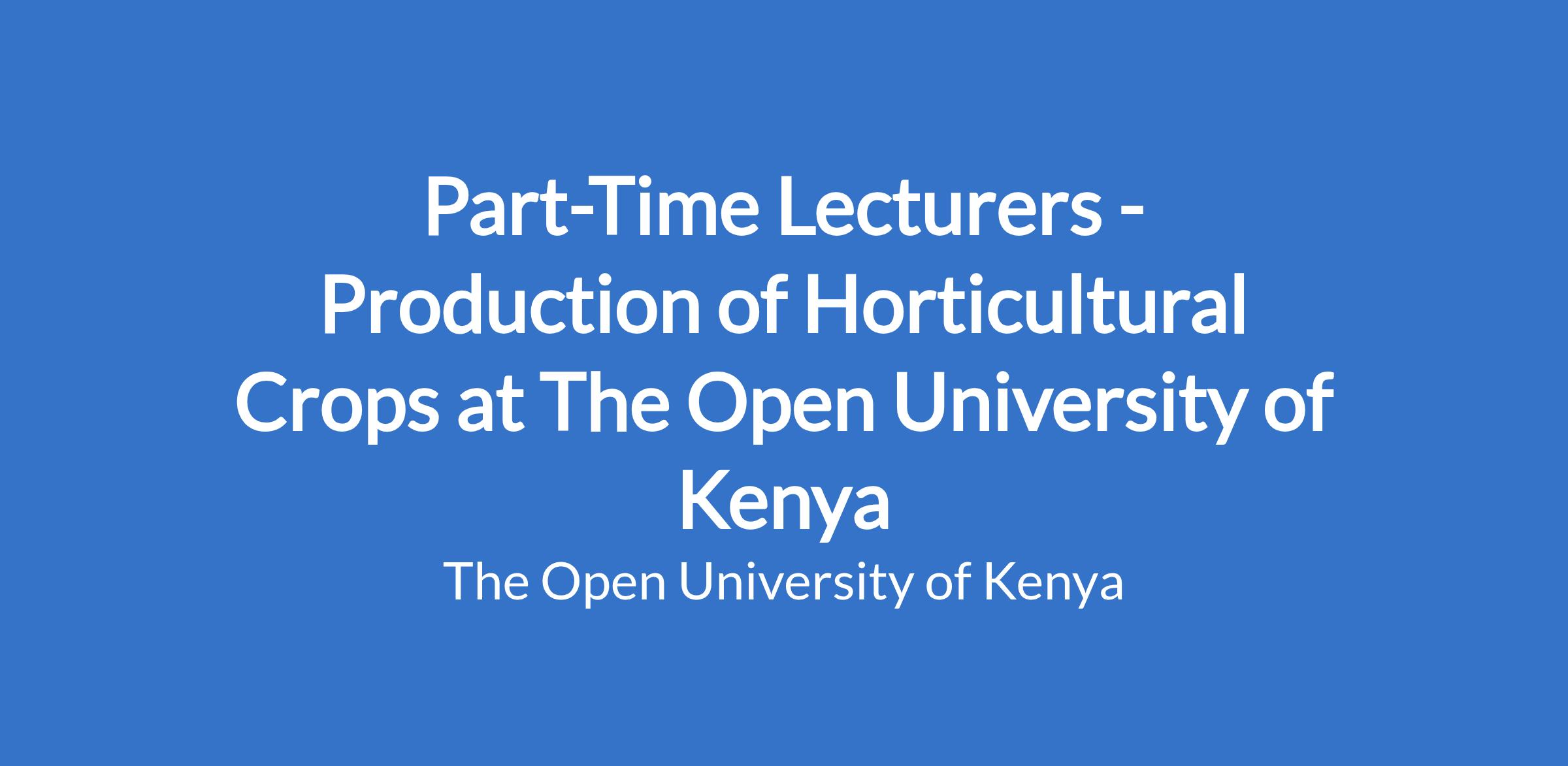 Part-Time Lecturers - Production of Horticultural Crops at The Open University of Kenya