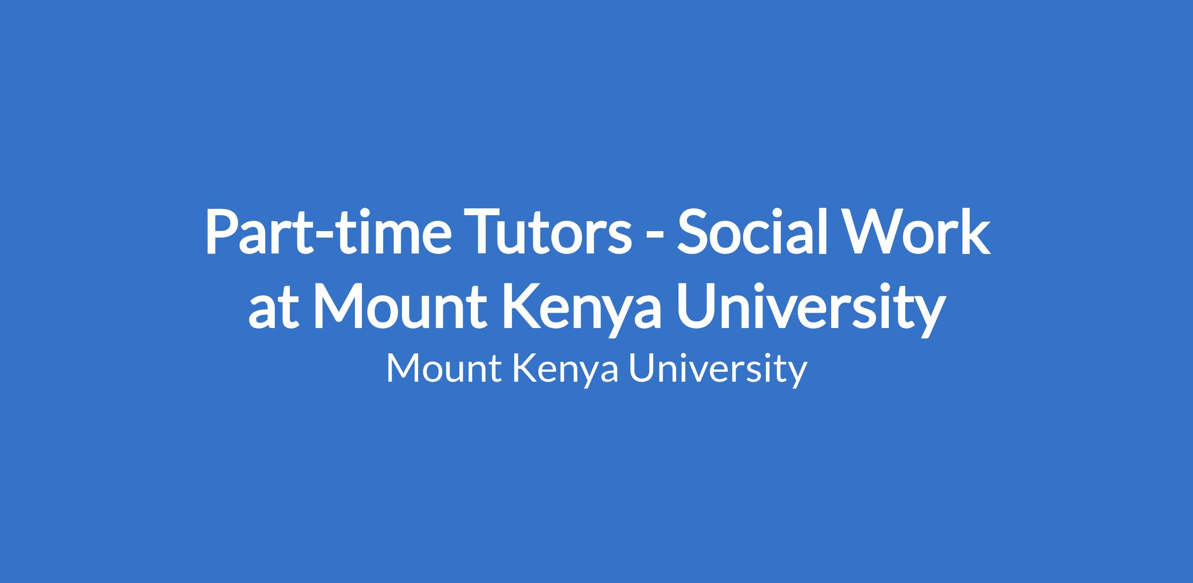 Part-time Tutors - Social Work at Mount Kenya University