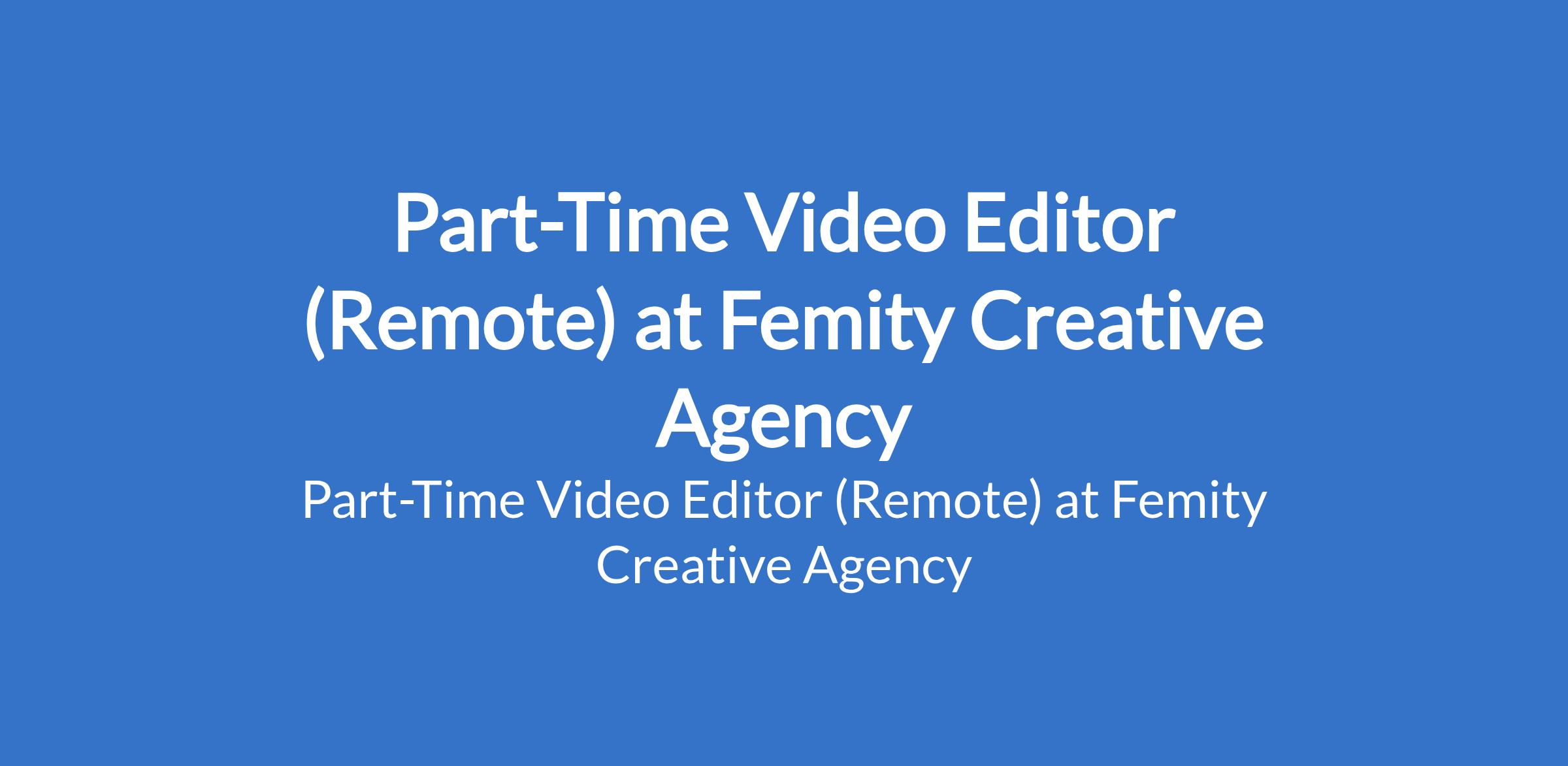 Femity Creative Agency is recruiting to fill the position of: Part-Time Video Editor. The position is located in Lagos Mainland, Lagos State (Remote). Salary: N80,000 monthly. Interested candidates should possess an OND qualification with 1 - 2 years experience, and must be based on Lagos Mainland.