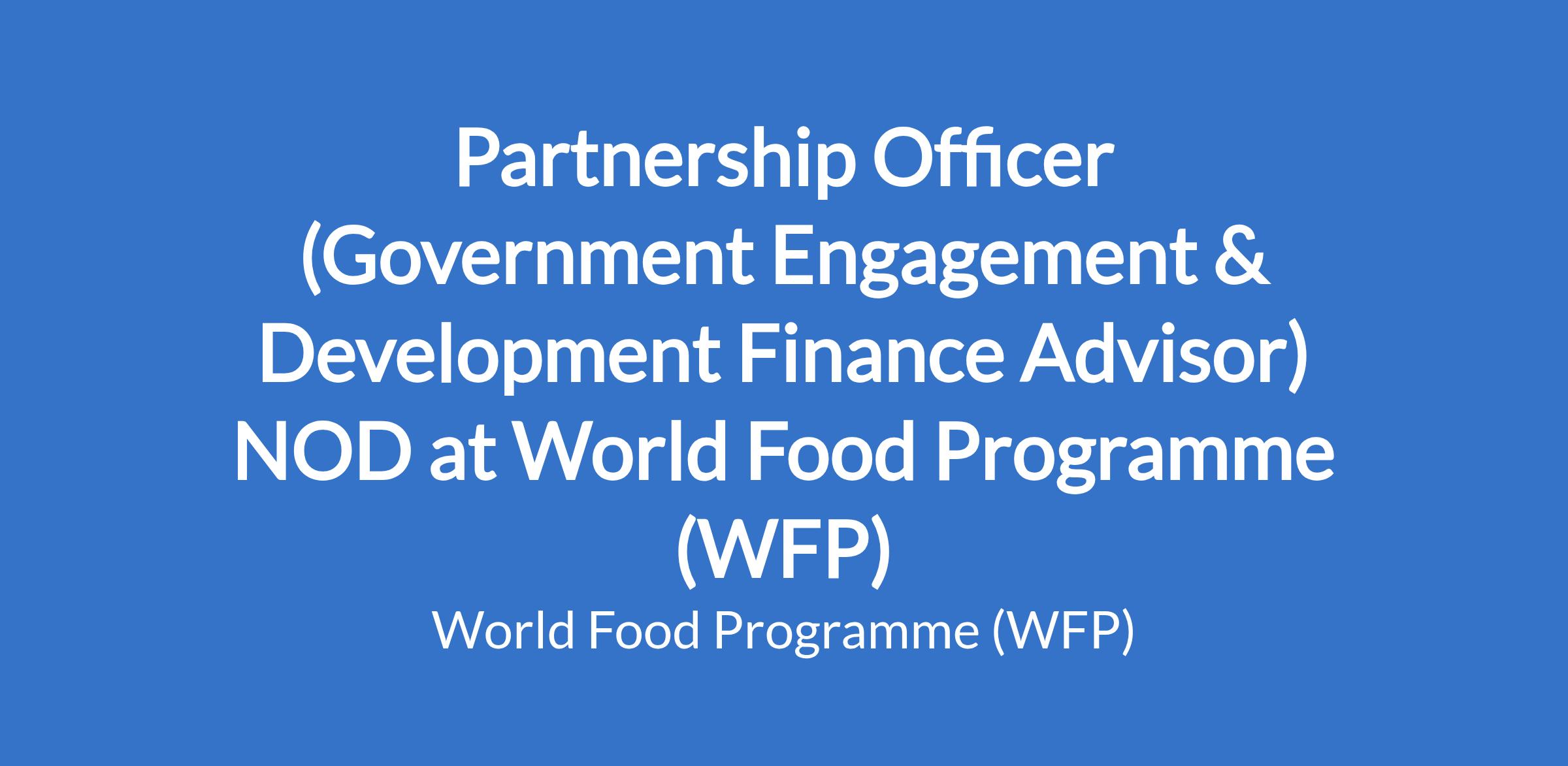 Partnership Officer (Government Engagement & Development Finance Advisor) NOD at World Food Programme (WFP)