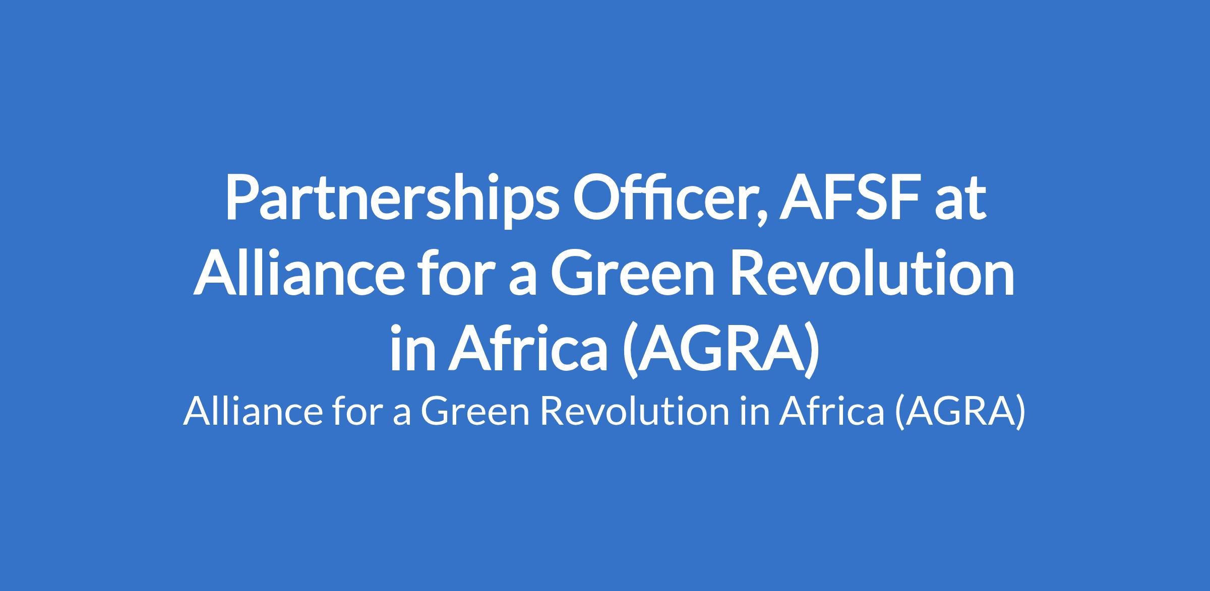 The Partnership Officer will work closely with the Managing Director and relevant staff in AFS Forum, various teams across AGRA, to strengthen and grow the AFS Forum Partners Group, identify, disseminate information, and deliver on partnership and public sector-led opportunities that scale AFS Forum's efforts.