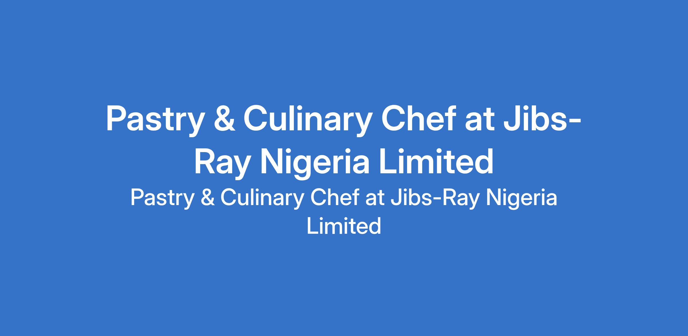 Jibs-Ray Nigeria Limited is recruiting to fill the position of: Pastry & Culinary Chef. The position is located in Ikoyi, Lagos State. Salary: N200,000 - N300,000 monthly. Interested candidates should possess a Culinary certification or relevant qualification with relevant experience in hospitality, catering, or related fields.