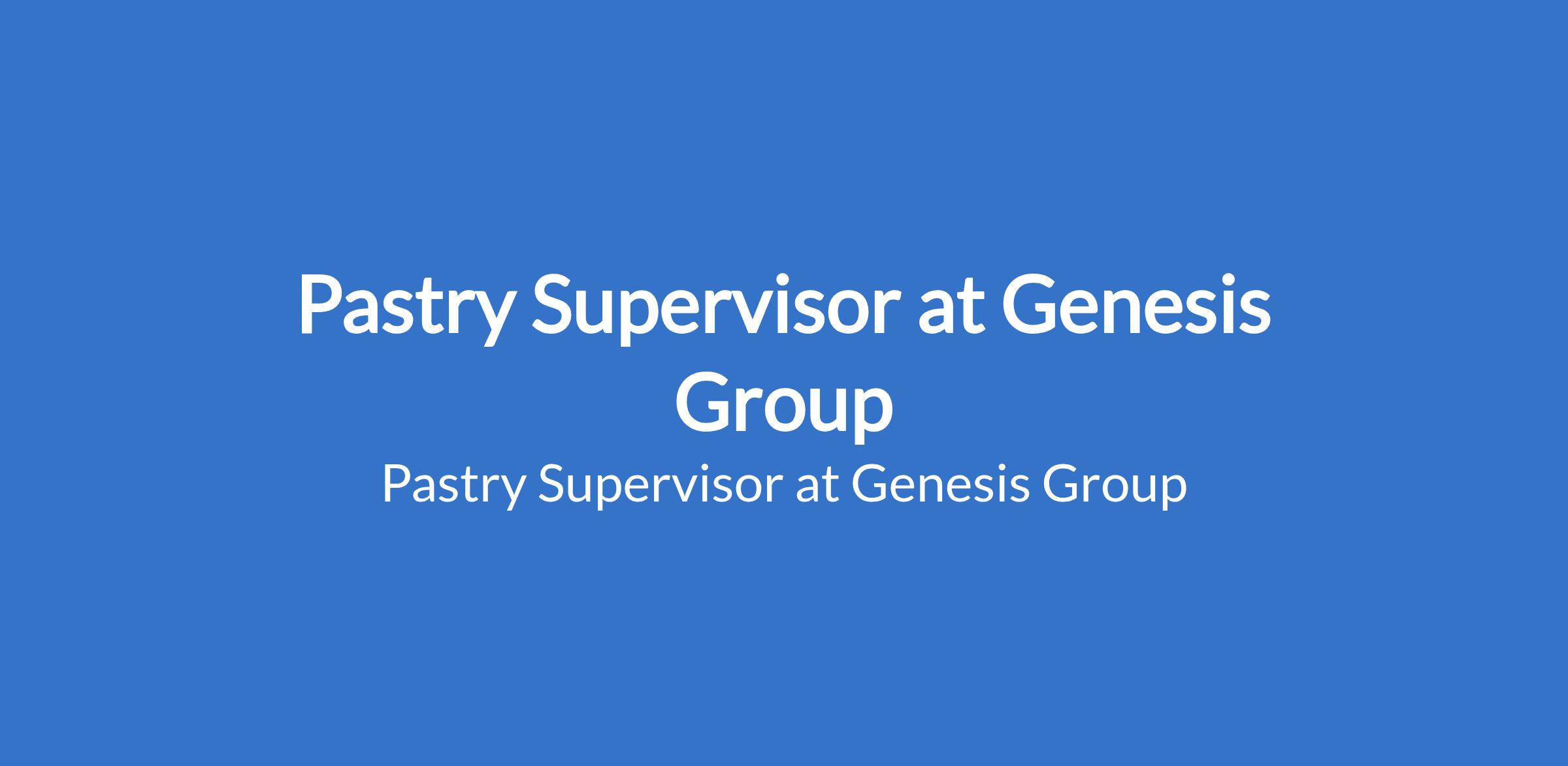Genesis Group is recruiting to fill the position of: Pastry Supervisor. Interested candidates should possess relevant qualifications.