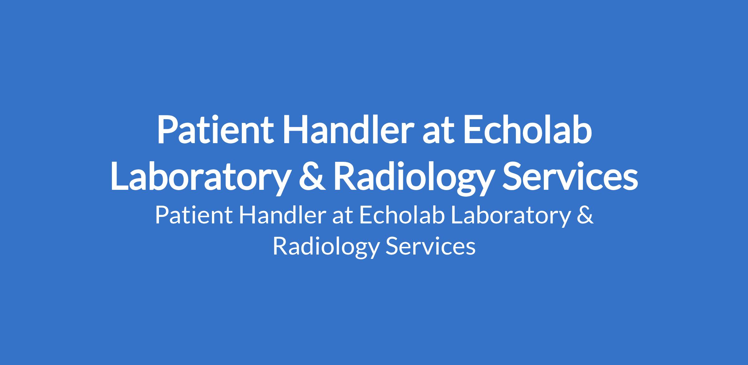 Echolab Laboratory & Radiology Services is recruiting to fill the position of: Patient Handler. The position is located in Garki, Abuja (FCT). Interested candidates should possess a High School Diploma or equivalent with a minimum of 1 year experience in similar role.
