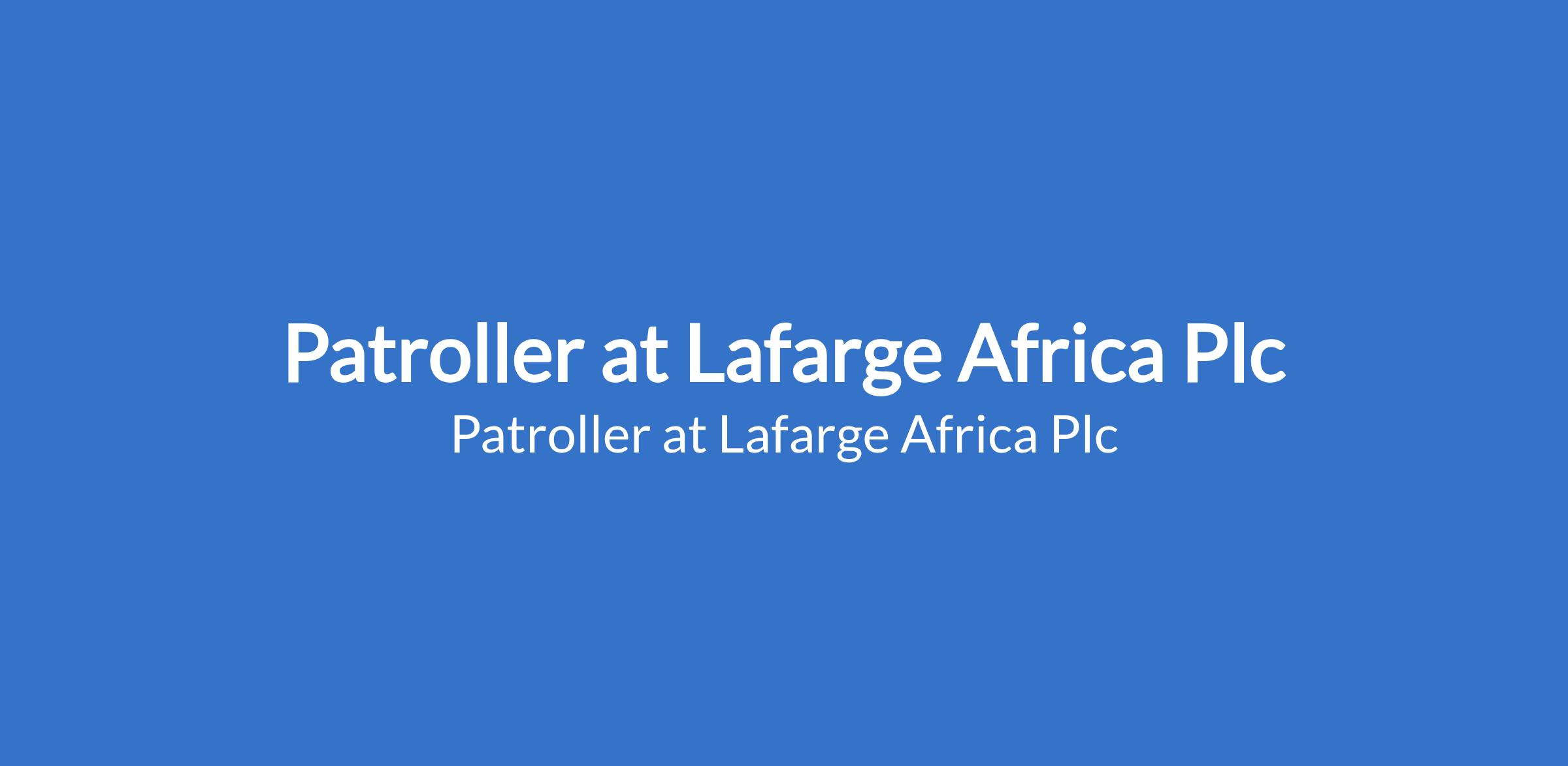 Lafarge Africa Plc is recruiting to fill the position of: Patroller. The position is located in Sagamu, Ogun State. Interested candidates should possess a Degree in Mechanical / Electrical Engineering with 2 - 5 years postgraduate experience.