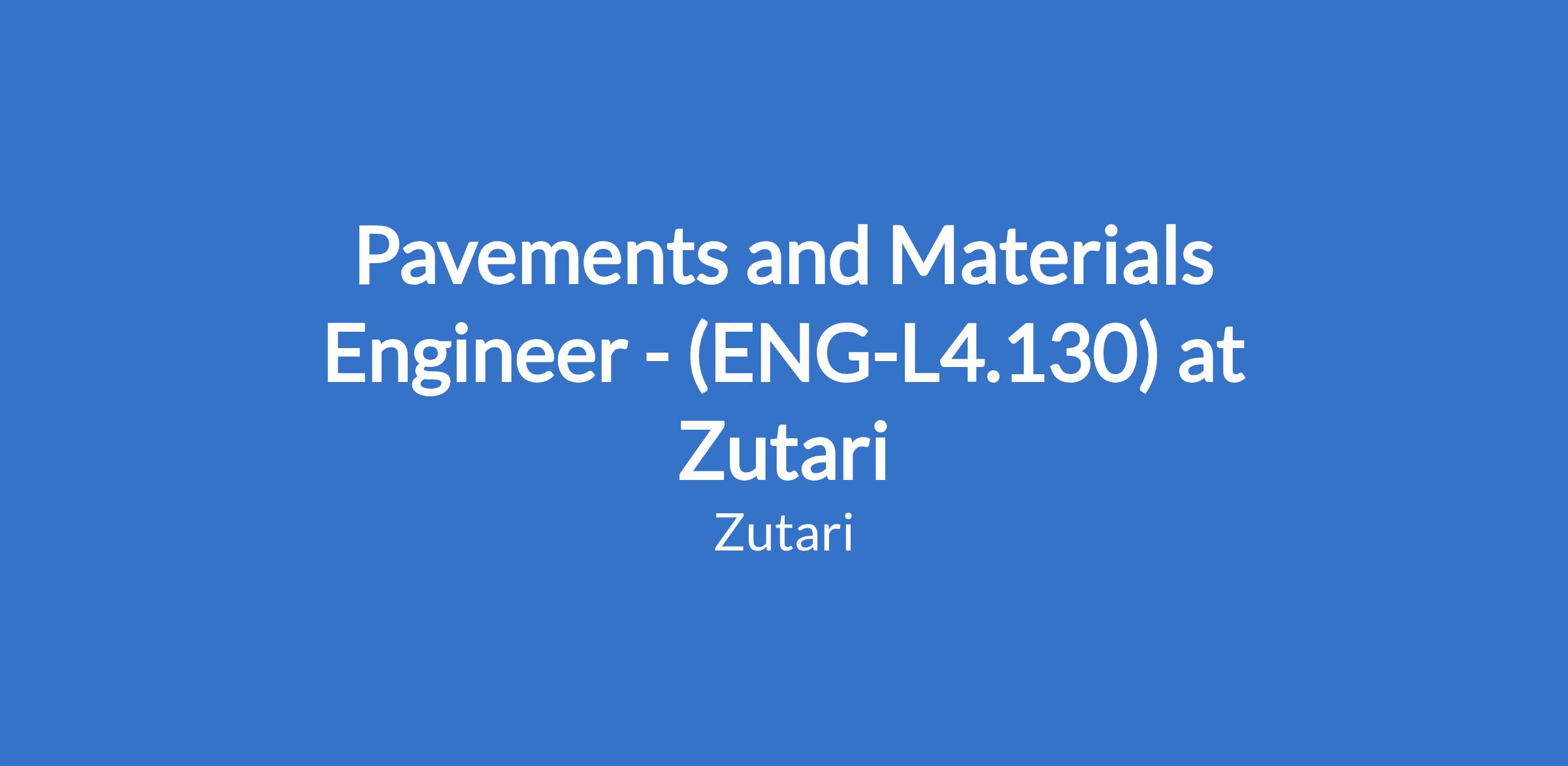 Pavements and Materials Engineer - (ENG-L4.130) at Zutari