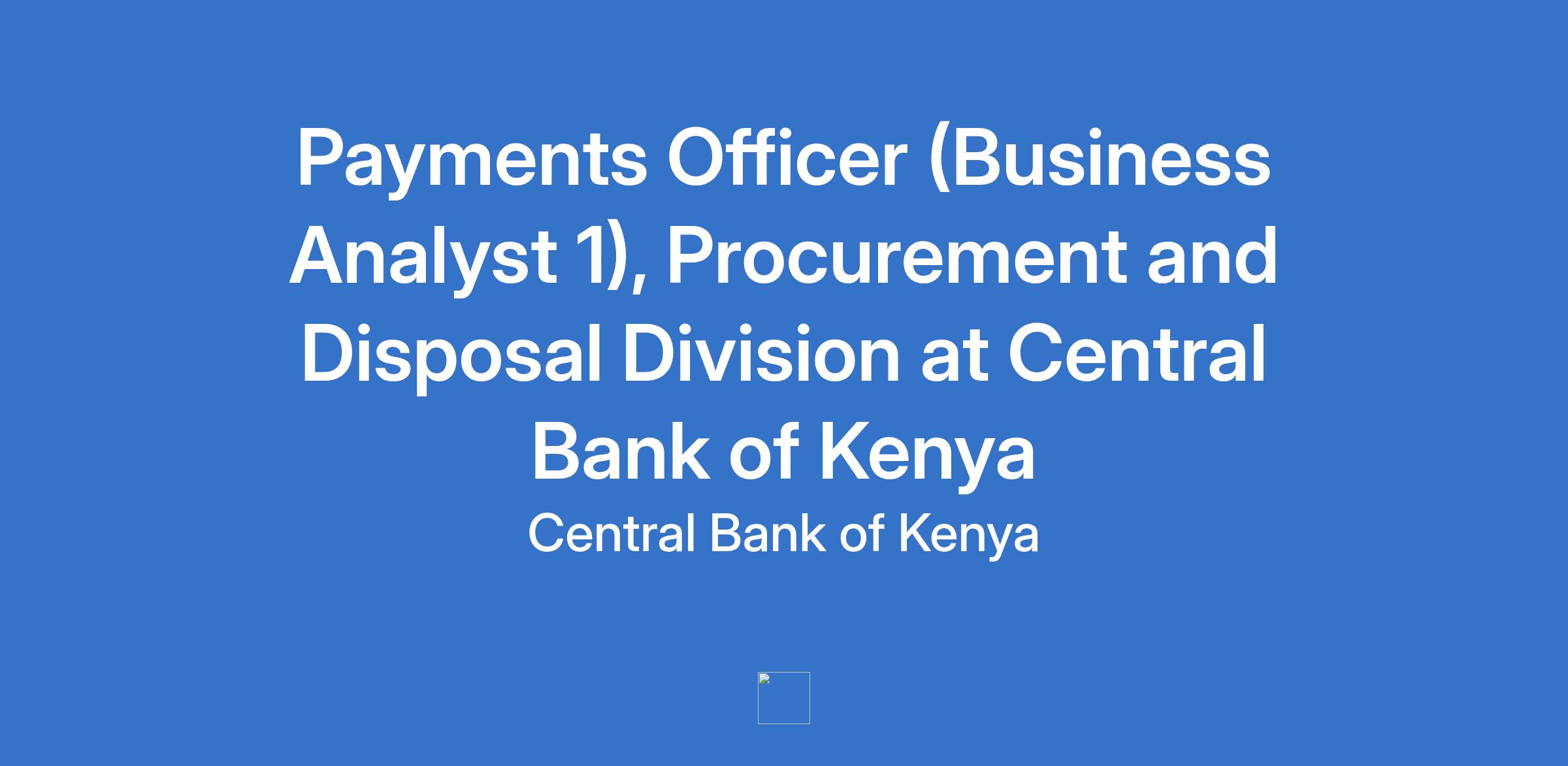 Payments Officer (Business Analyst 1), Procurement and Disposal Division at Central Bank of Kenya