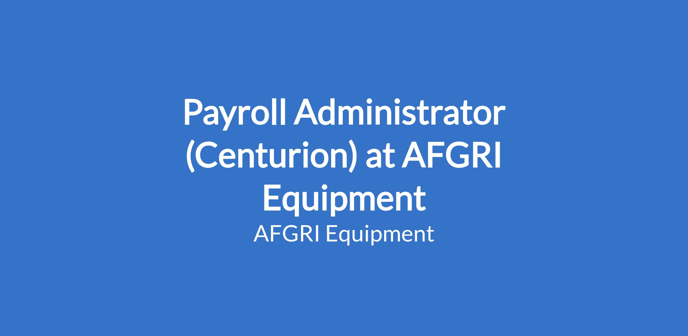 AFGRI Group Holdings is looking for a detailÃÂâÃÂÃÂÃÂÃÂdriven Payroll Administrator to join our dynamic Payroll team based in Centurion. This is an exciting opportunity for a payroll professional who thrives on accuracy, control, and meeting deadlines, and who wants to play a key role in ensuring seamless payroll processing across the Group.