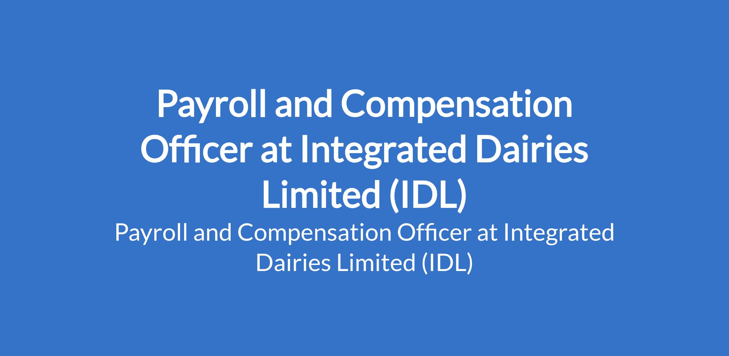 Payroll and Compensation Officer at Integrated Dairies Limited (IDL)