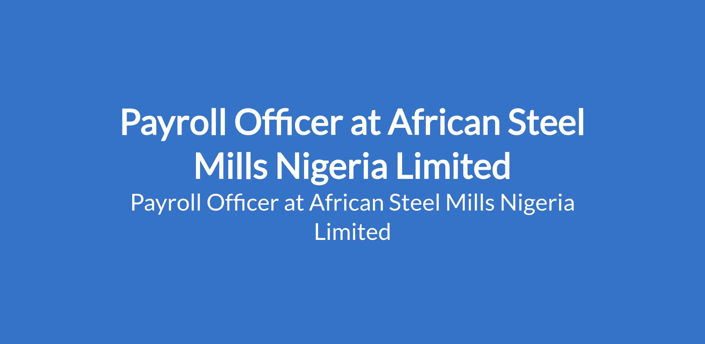 Payroll Officer at African Steel Mills Nigeria Limited