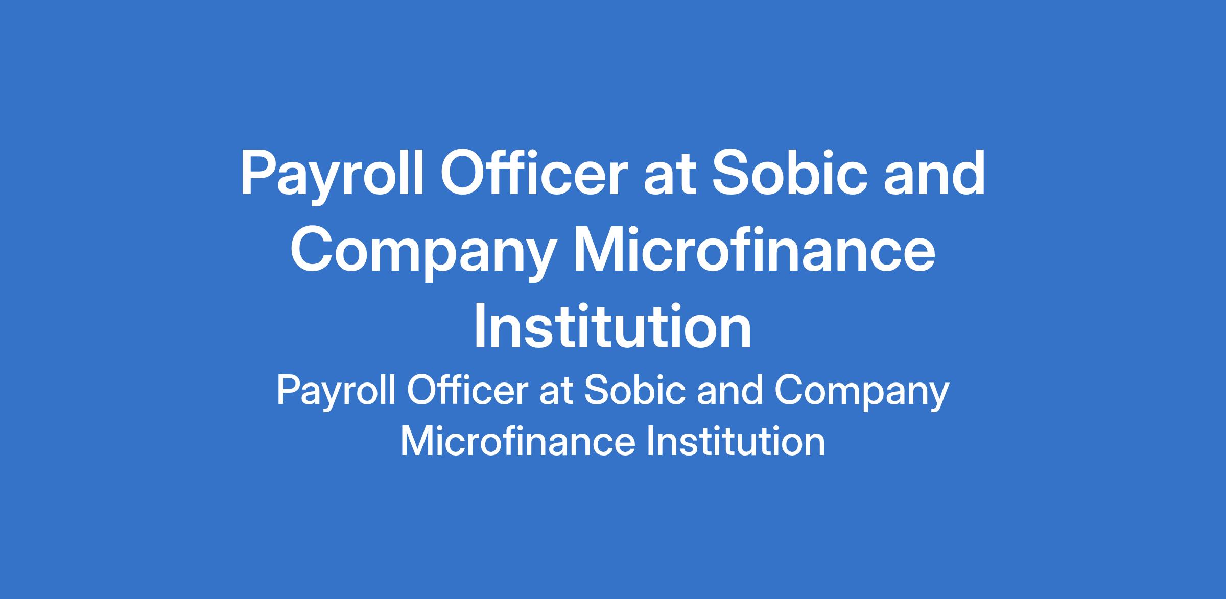 Payroll Officer at Sobic and Company Microfinance Institution