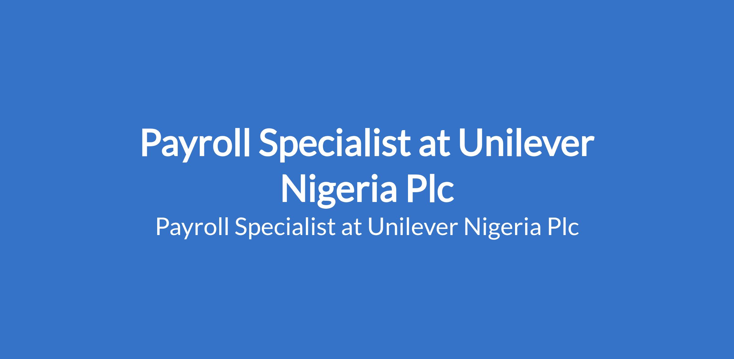 Unilever Nigeria Plc is recruiting to fill the position of: Payroll Specialist. The position is located in Lagos State. Interested candidates should possess a Degree in relevant field with 3-4 years experience in Payroll and Reward