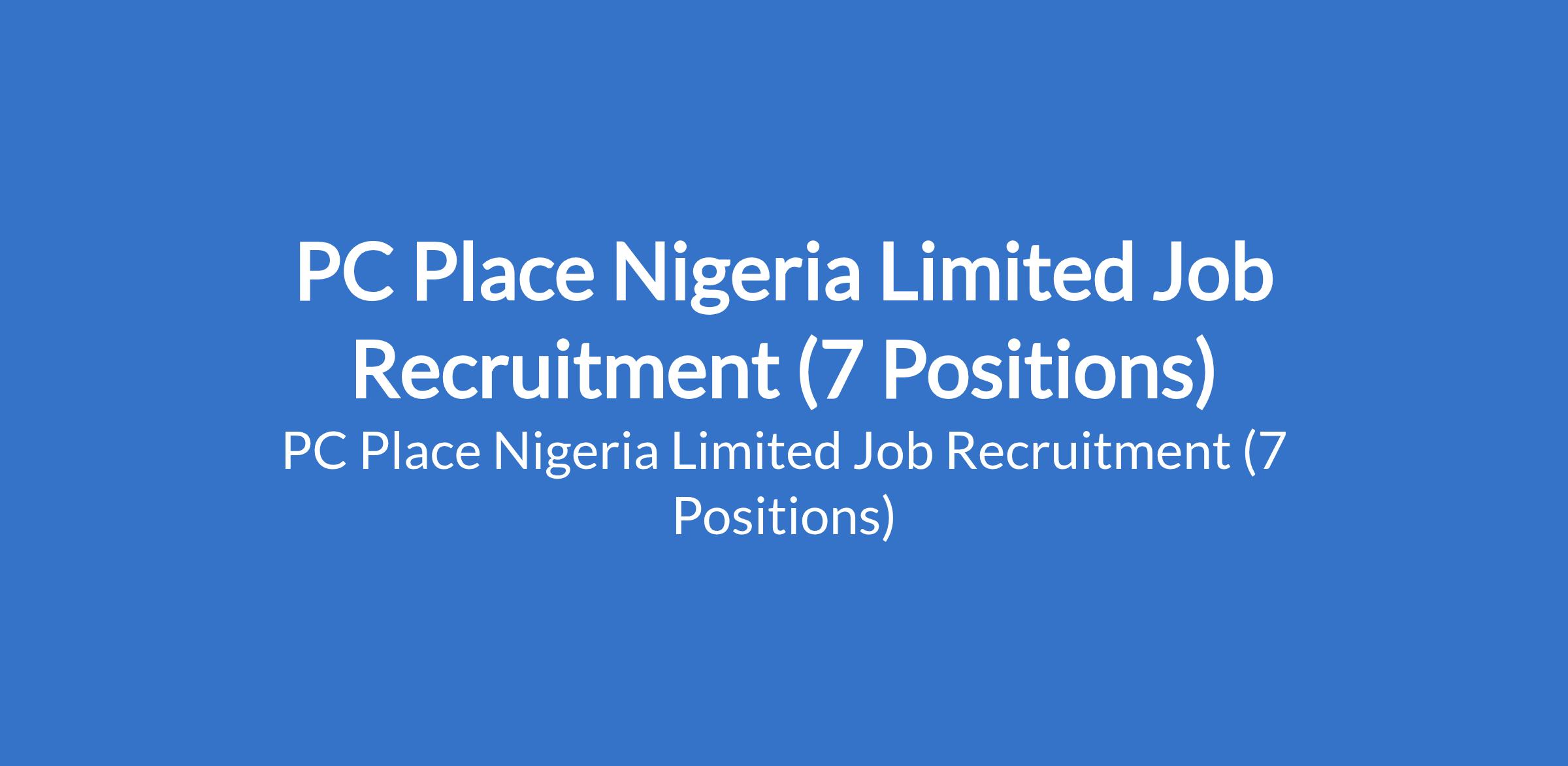 PC Place Nigeria Limited is recruiting suitably qualified candidates to fill the following positions in Lagos State: Officer Cleaner , Dispatch Rider, Business Development Executive - Tech Industry, Procurement Officer - Tech Equipment & Gadget, Computer Programmer, and Telesale Executive (Female) - Tech Products (Onsite).