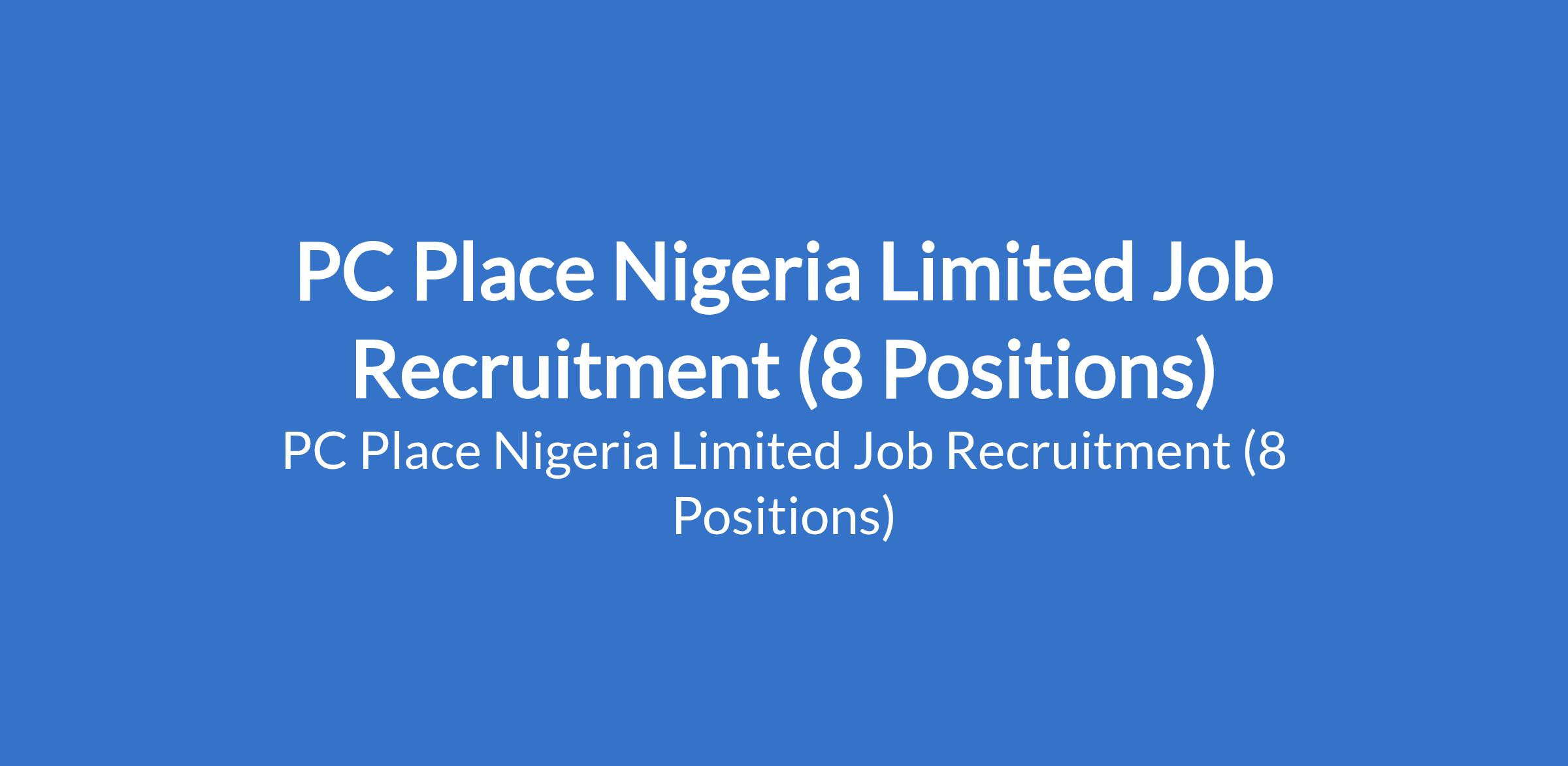 PC Place Nigeria Limited is recruiting suitably qualified candidates to fill the following positions in Lagos State: Accountant, Office Assistant, Customer Service Executive / Admin Assistant, Company Driver, Content Creator, Online Sales Representative, Account Officer.
