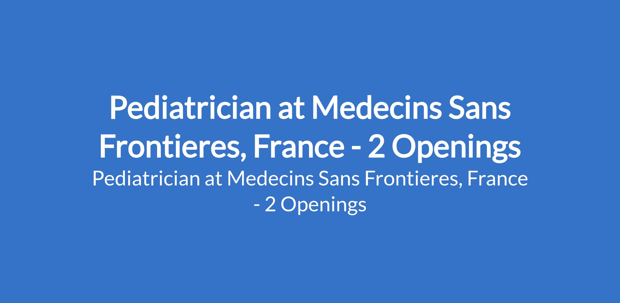 Pediatrician at Medecins Sans Frontieres, France - 2 Openings