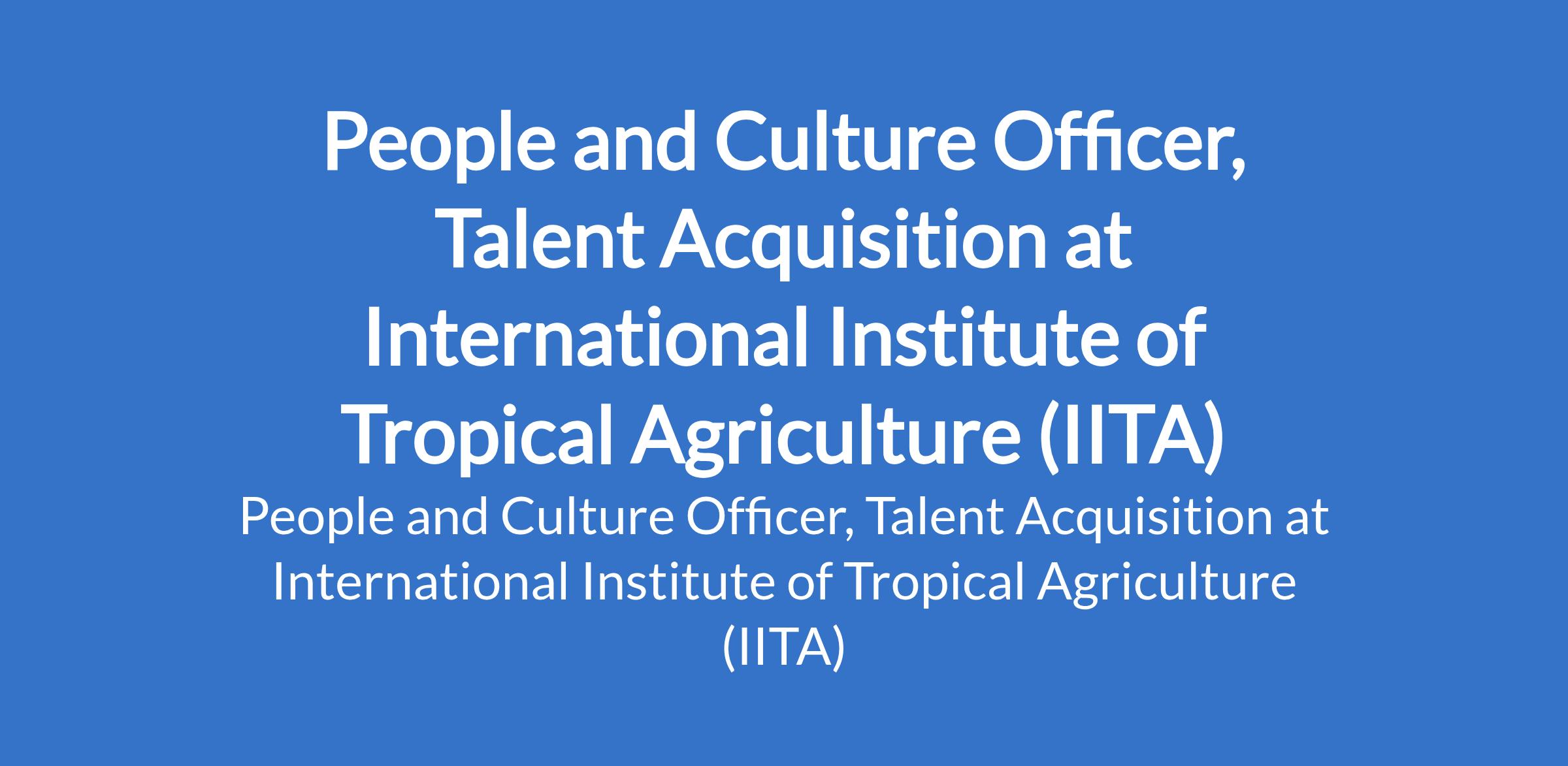 International Institute of Tropical Agriculture (IITA) is recruiting to fill the position of: People and Culture Officer, Talent Acquisition. The position is located in Ibadan, Oyo State. Interested candidates should possess a BSC / HND qualification in Human Resources, Public Administration or any other related course of study with a minimum of two (2) years progressive HR experience in Talent Acquisition in a well-structured environment.