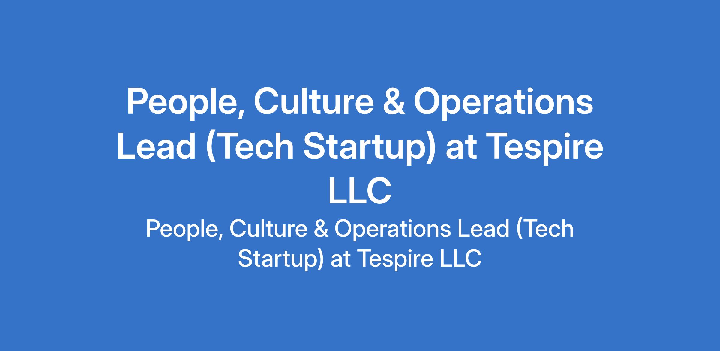 Tespire LLC is recruiting to fill the position of: People, Culture & Operations Lead (Tech Startup). The position is located in Abuja (FCT). Salary: N300,000 - N400,000 monthly. Interested candidates should possess a Bachelors Degree in Human Resources, Business Administration, Industrial Relations, Computer Science, Information Systems, or a related field with experience working in or leading within a tech startup or fast-paced organization.