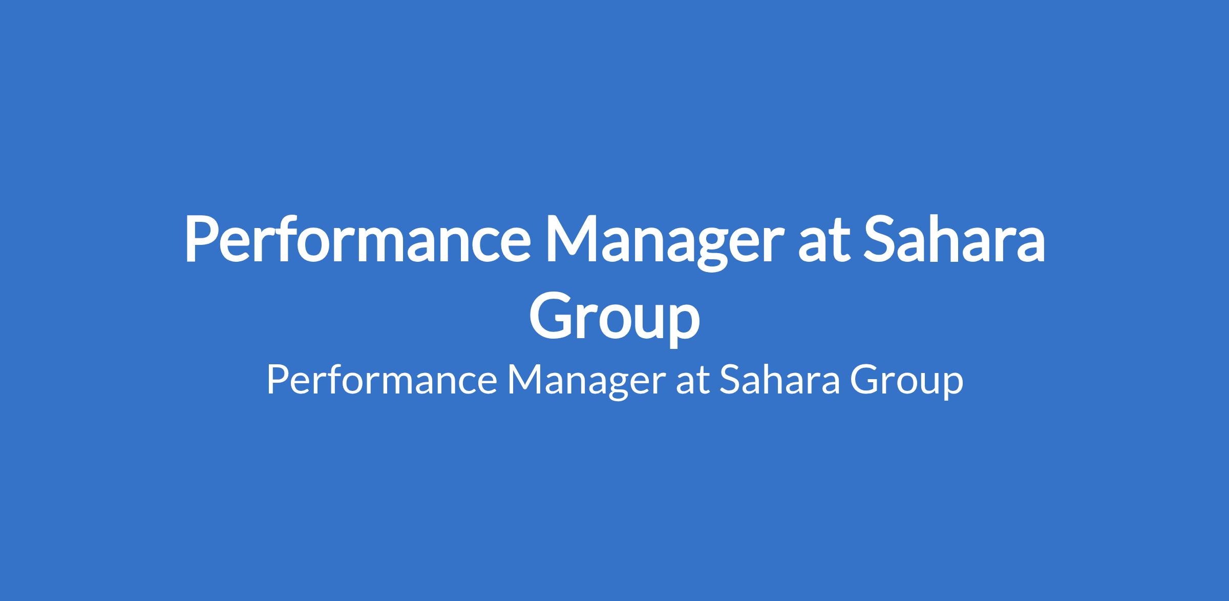 Performance Manager at Sahara Group