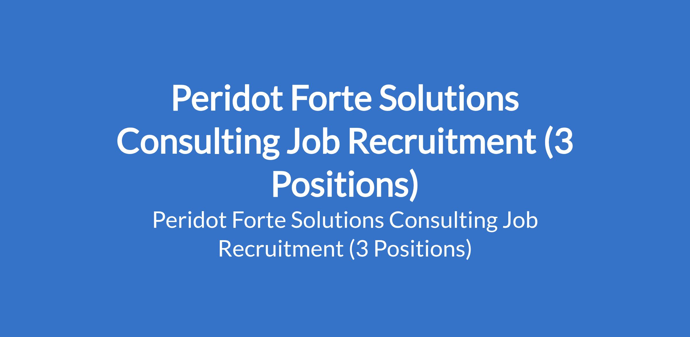 Peridot Forte Solutions Consulting Job Recruitment (3 Positions)