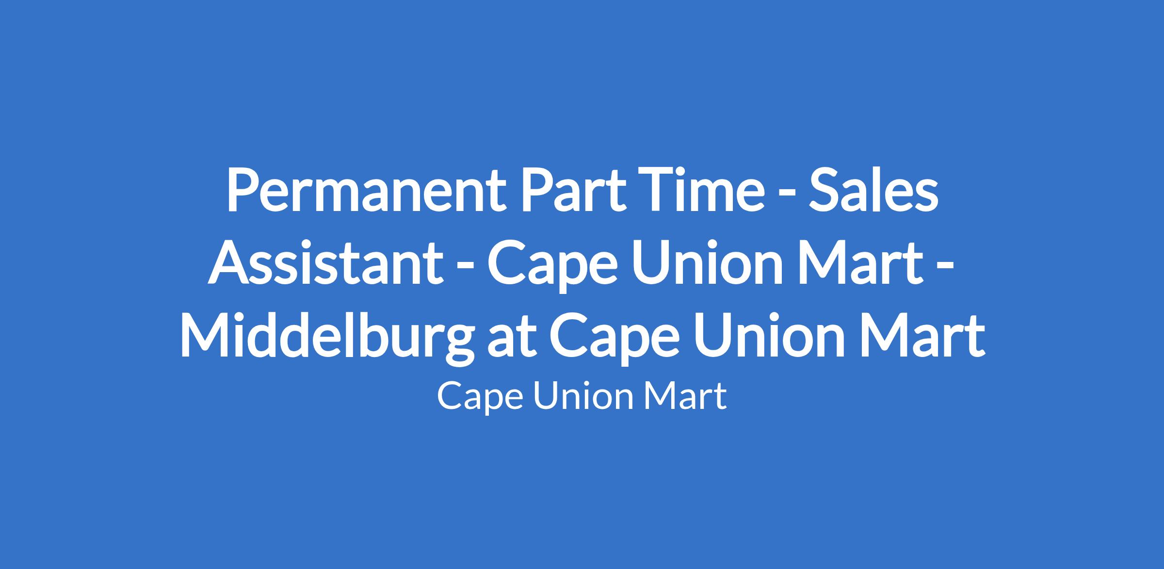 Permanent Part Time - Sales Assistant - Cape Union Mart - Middelburg at Cape Union Mart