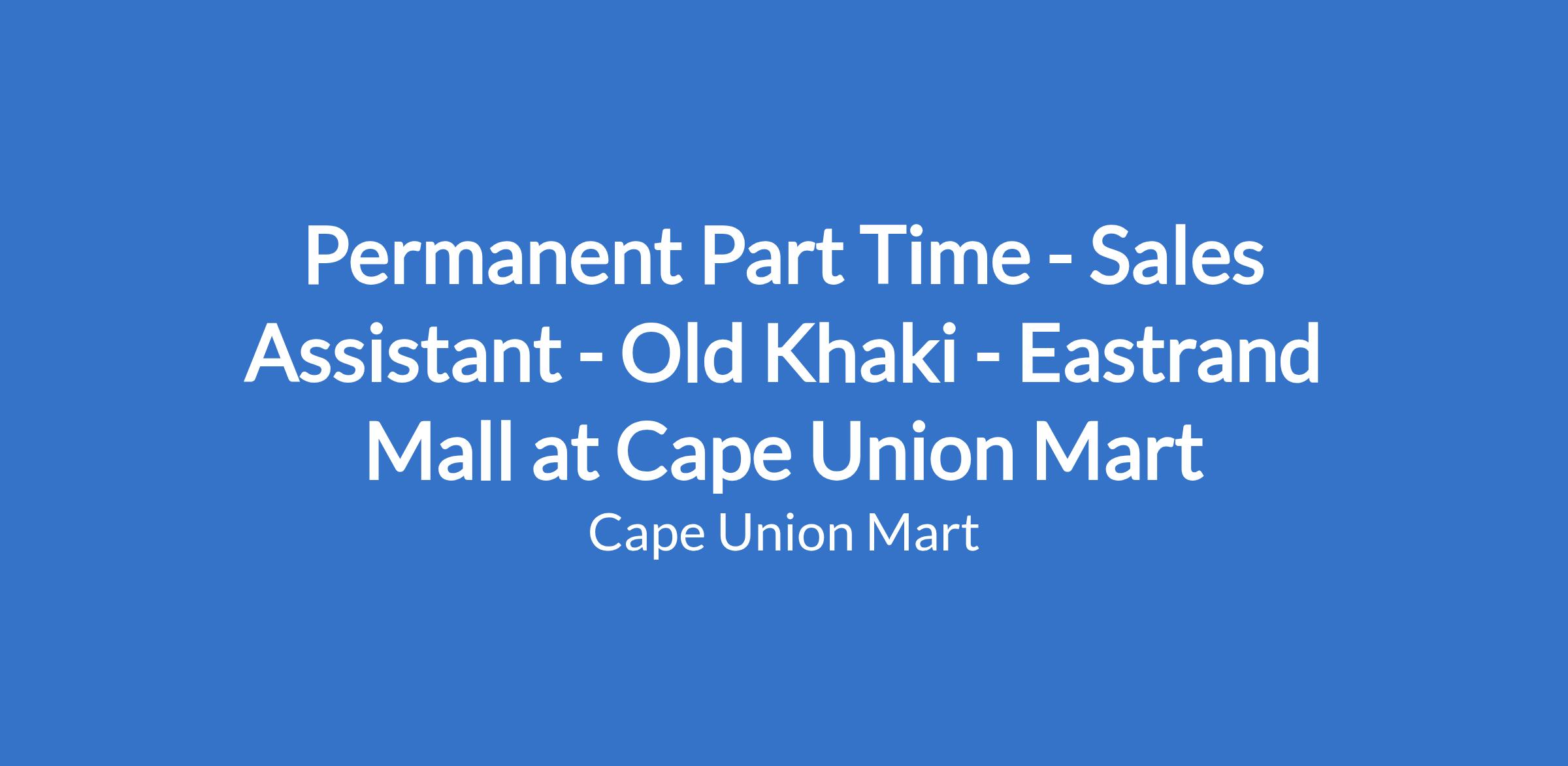 Permanent Part Time - Sales Assistant - Old Khaki - Eastrand Mall at Cape Union Mart