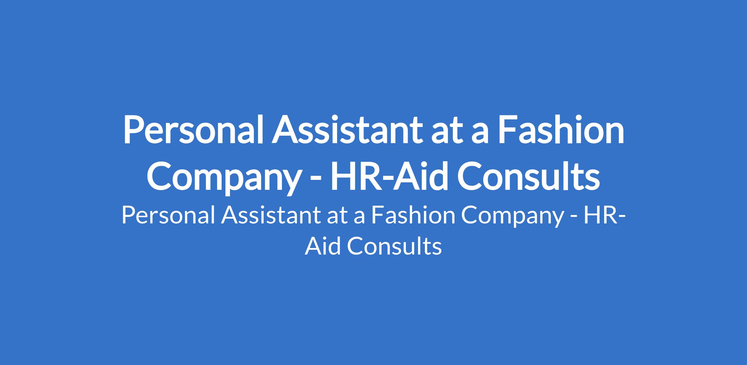 HR-Aid Consults - Our client, a fashion Company is recruiting to fill the position of: Personal Assistant. The position is located in Lekki, Lagos State. Salary: N150,000 per month. Interested candidates should possess a relevant qualification with 1-2 years experience as a personal assistant.