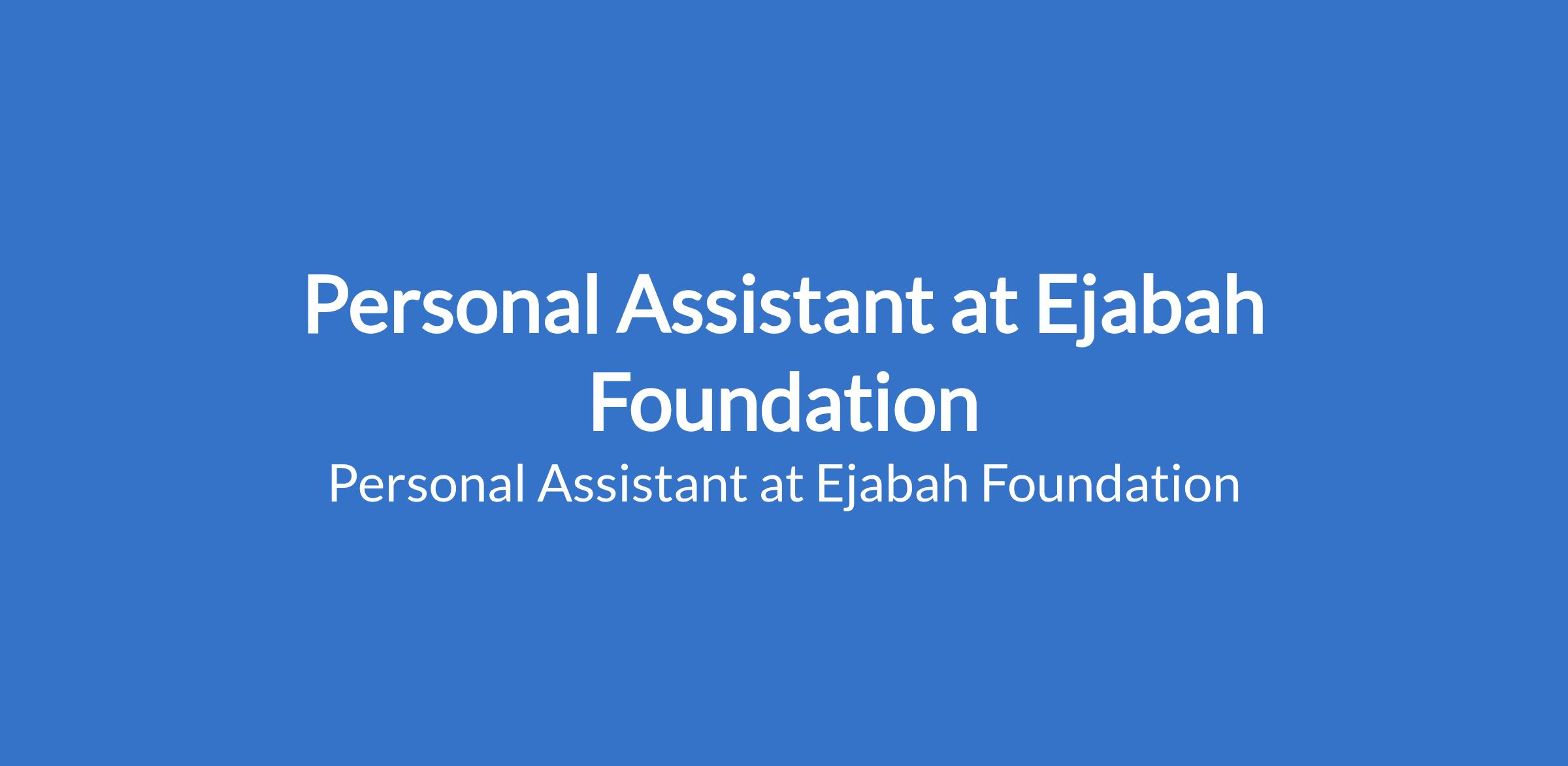 Ejabah Foundation is recruiting to fill the position of: Personal Assistant. The position is located in Lagos State. Interested candidates should possess relevant qualifications with experience.